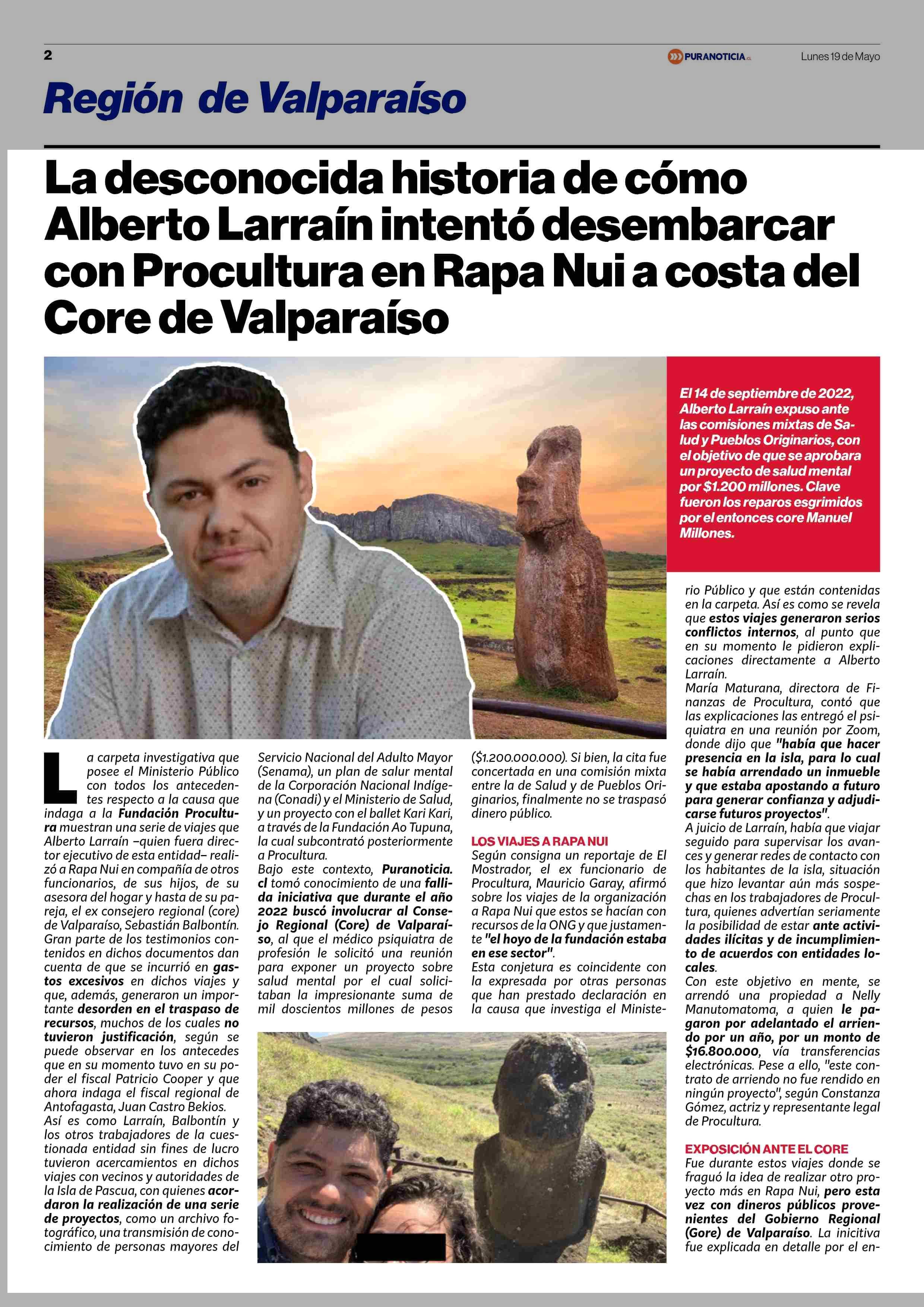 Título: La desconocida hiatoria de cómo Alberto Larraín intentó desembarcar con Procultura en Rapa Nui a costa del Core de Valparaíso