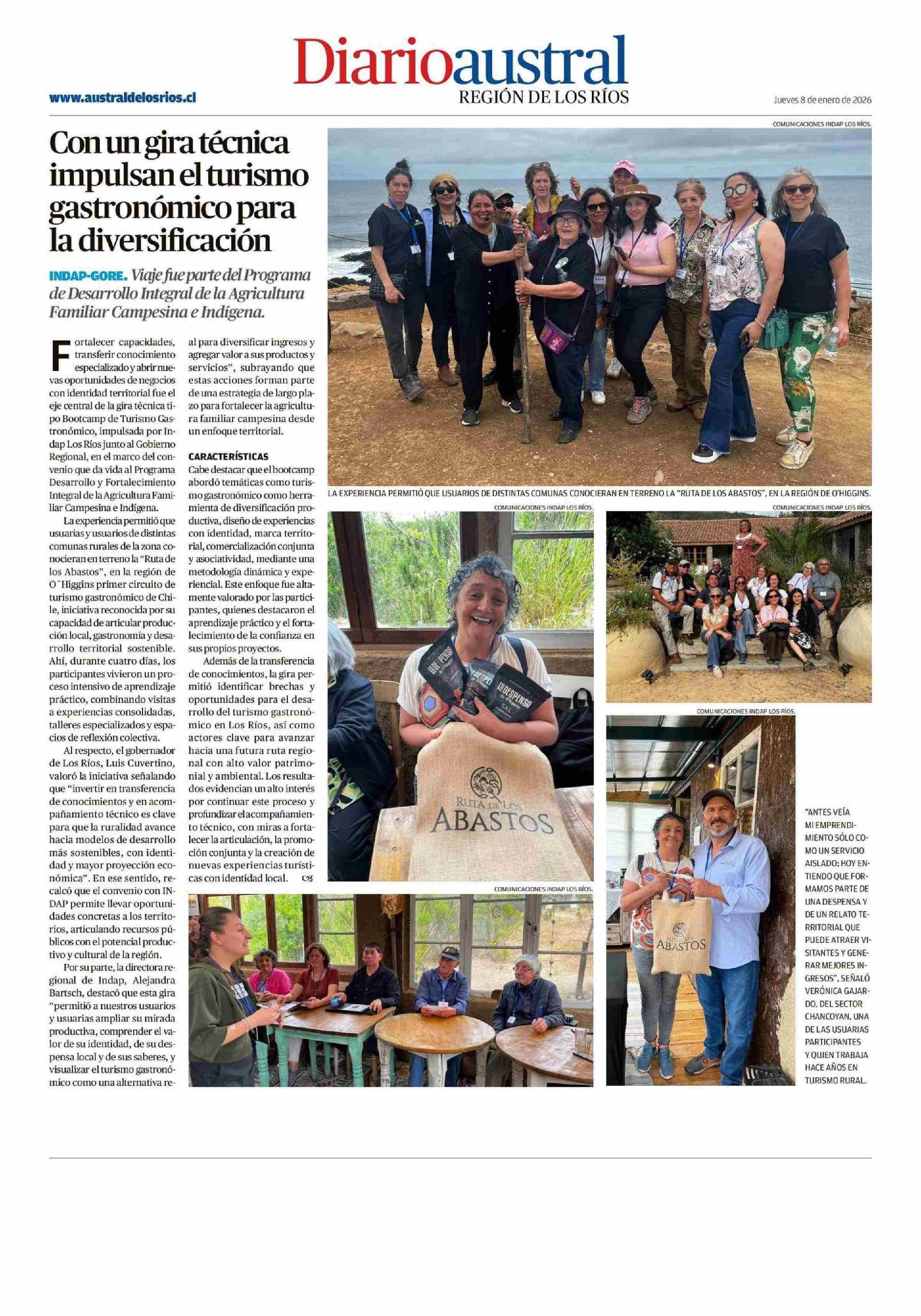 Con un gira técnica impulsan el turismo gastronómico para la diversificación 08-01-2026 Diario Austral Región de Los Ríos |