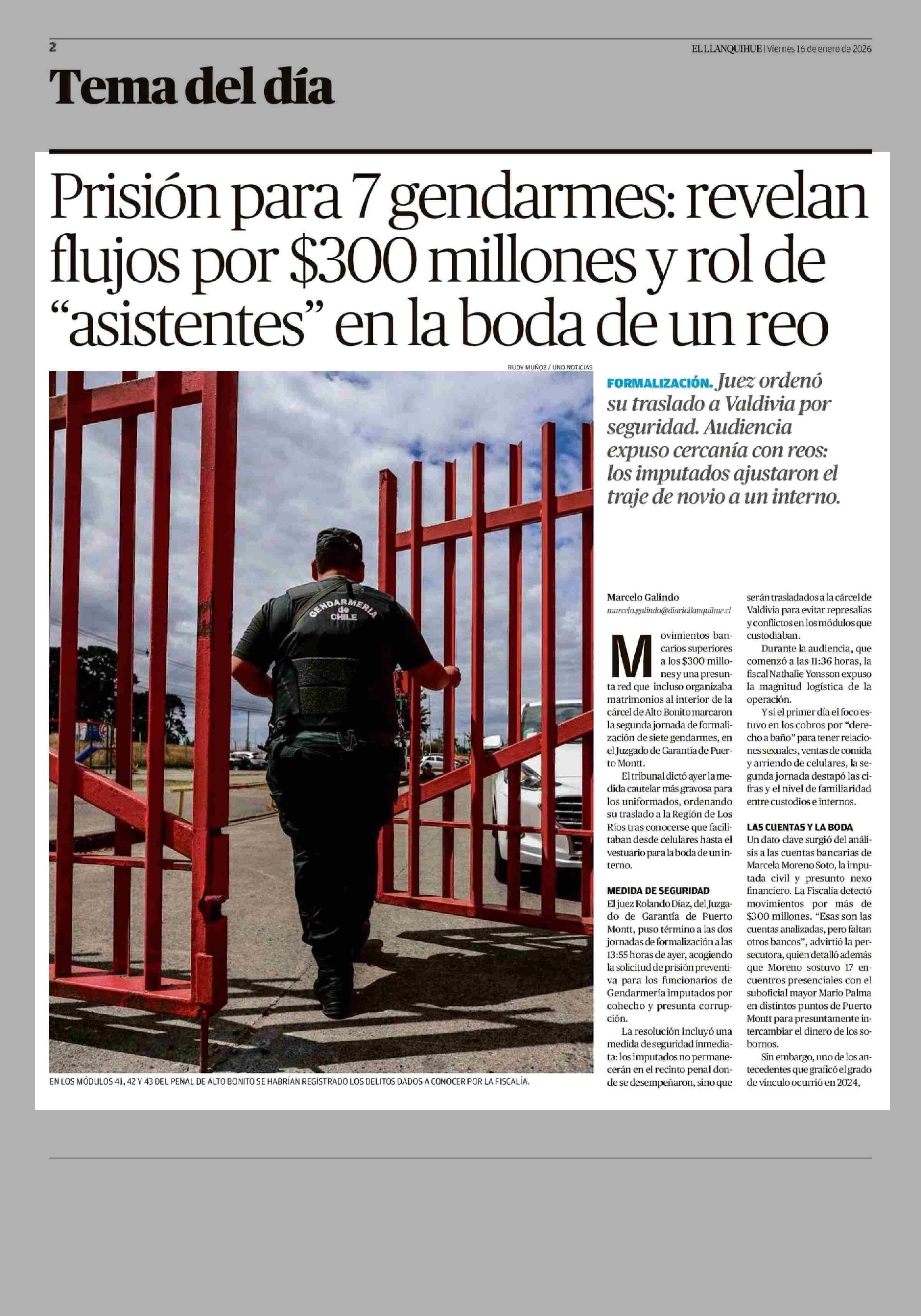 Título: Prisión para 7 gendarmes: revelan flujos por $300 millones y rol de "asistentes" en la boda de un reo