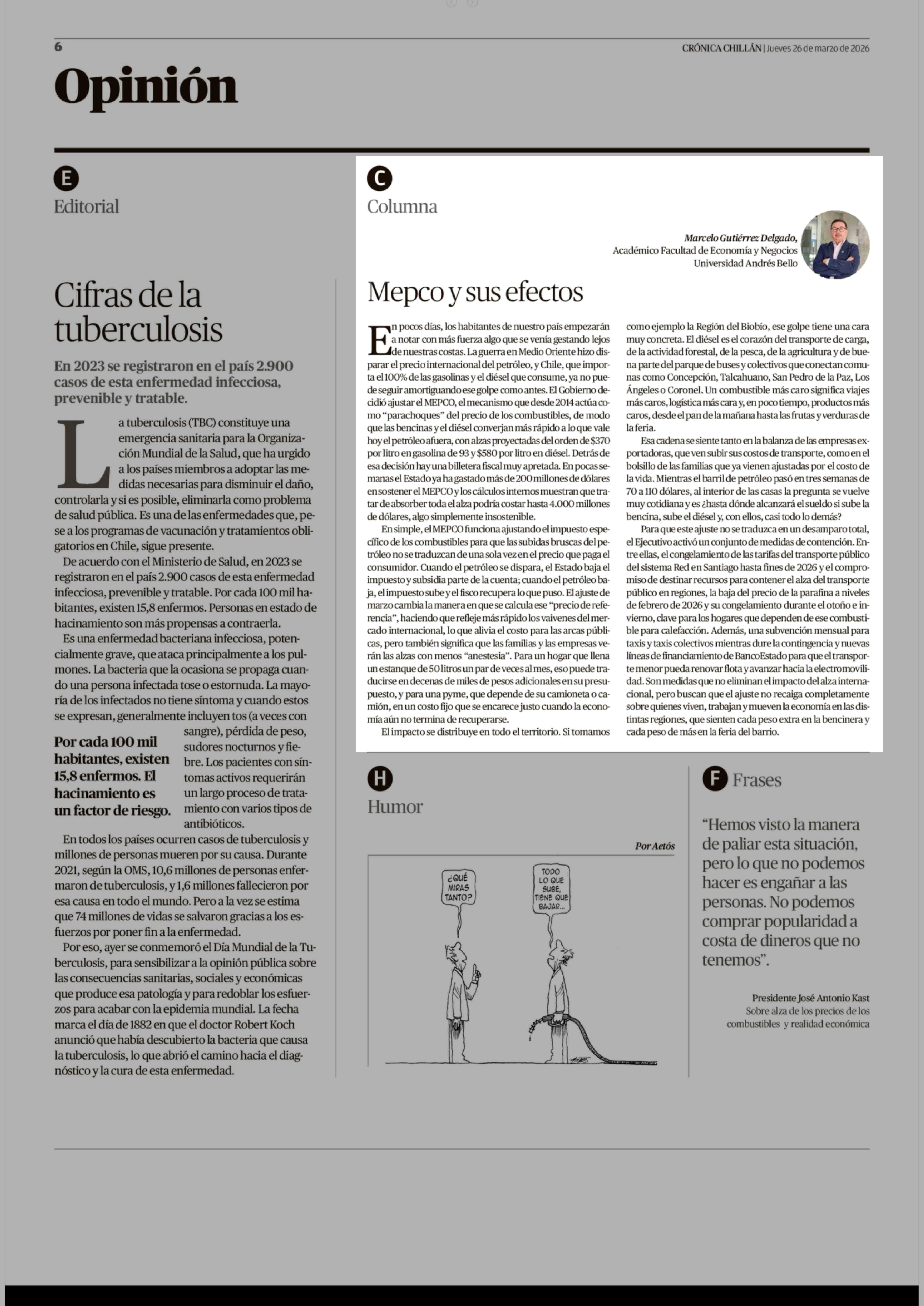 Fecha: 26-03-2026 Sector: Columnas de Opinión Región: Región del Ñuble