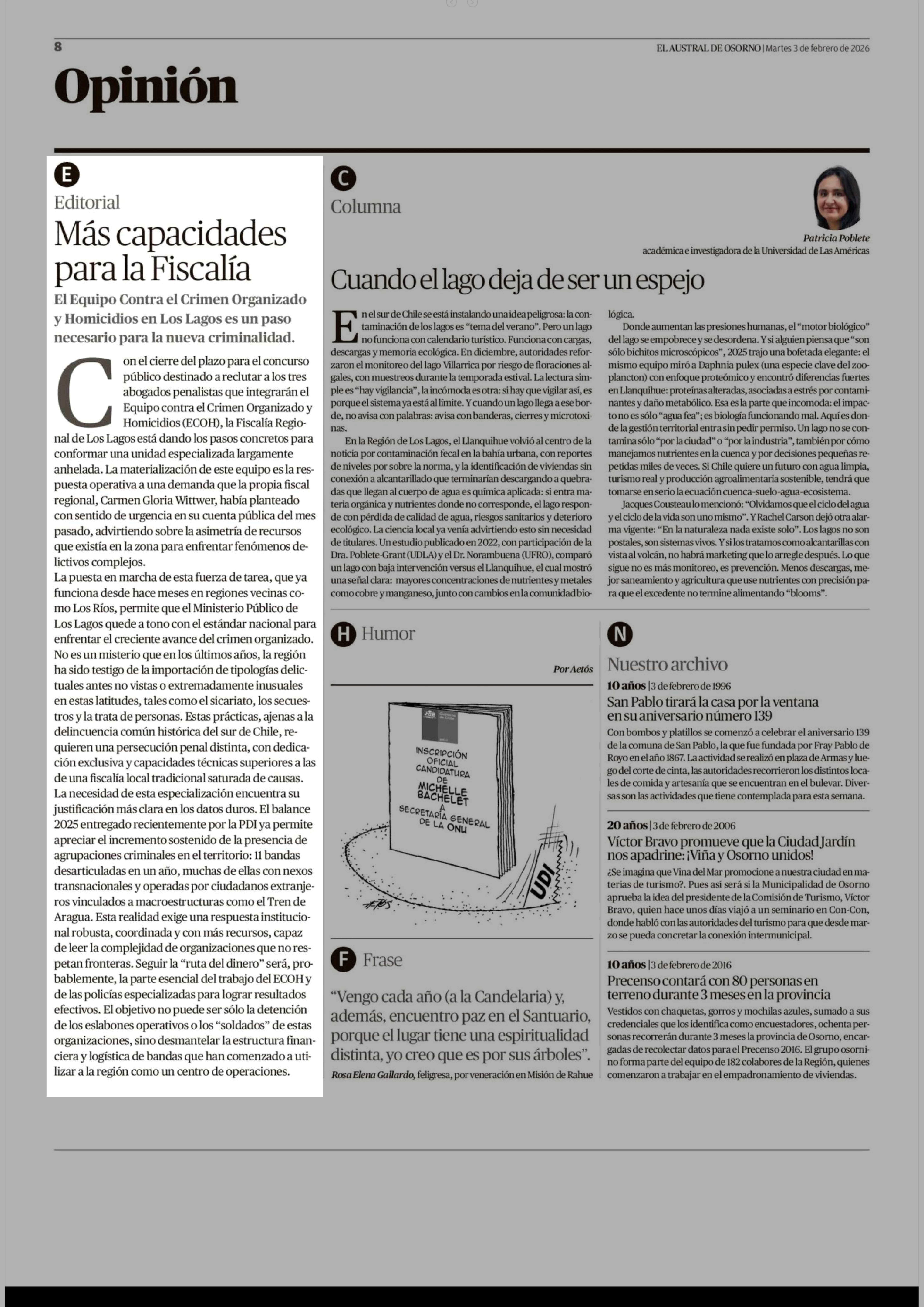 Fecha: 03-02-2026 Sector: Editorial Región: Región de Los Lagos