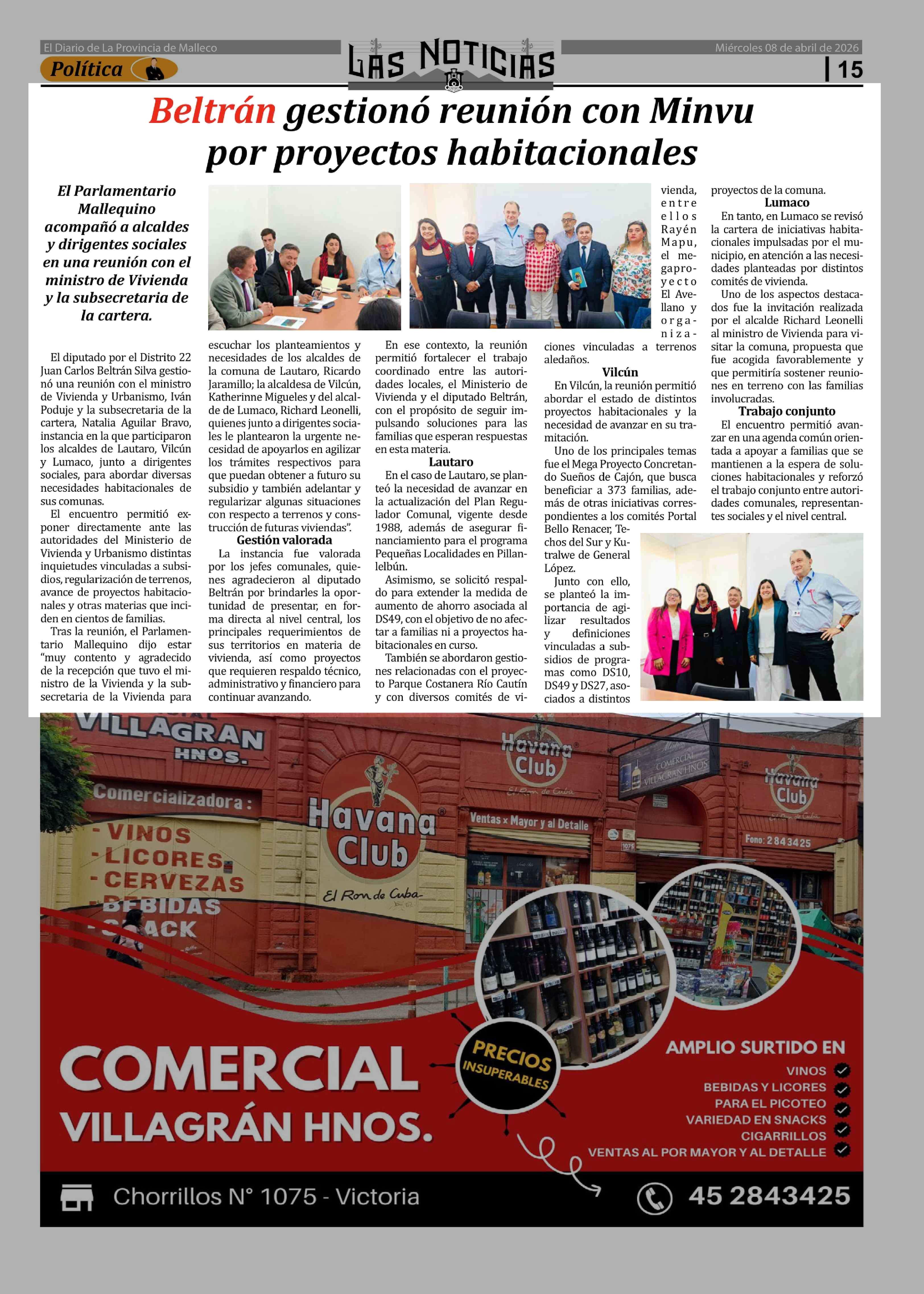 Beltrán gestionó reunión con Minvu por proyectos habitacionales 08-04-2026 Las Noticias |