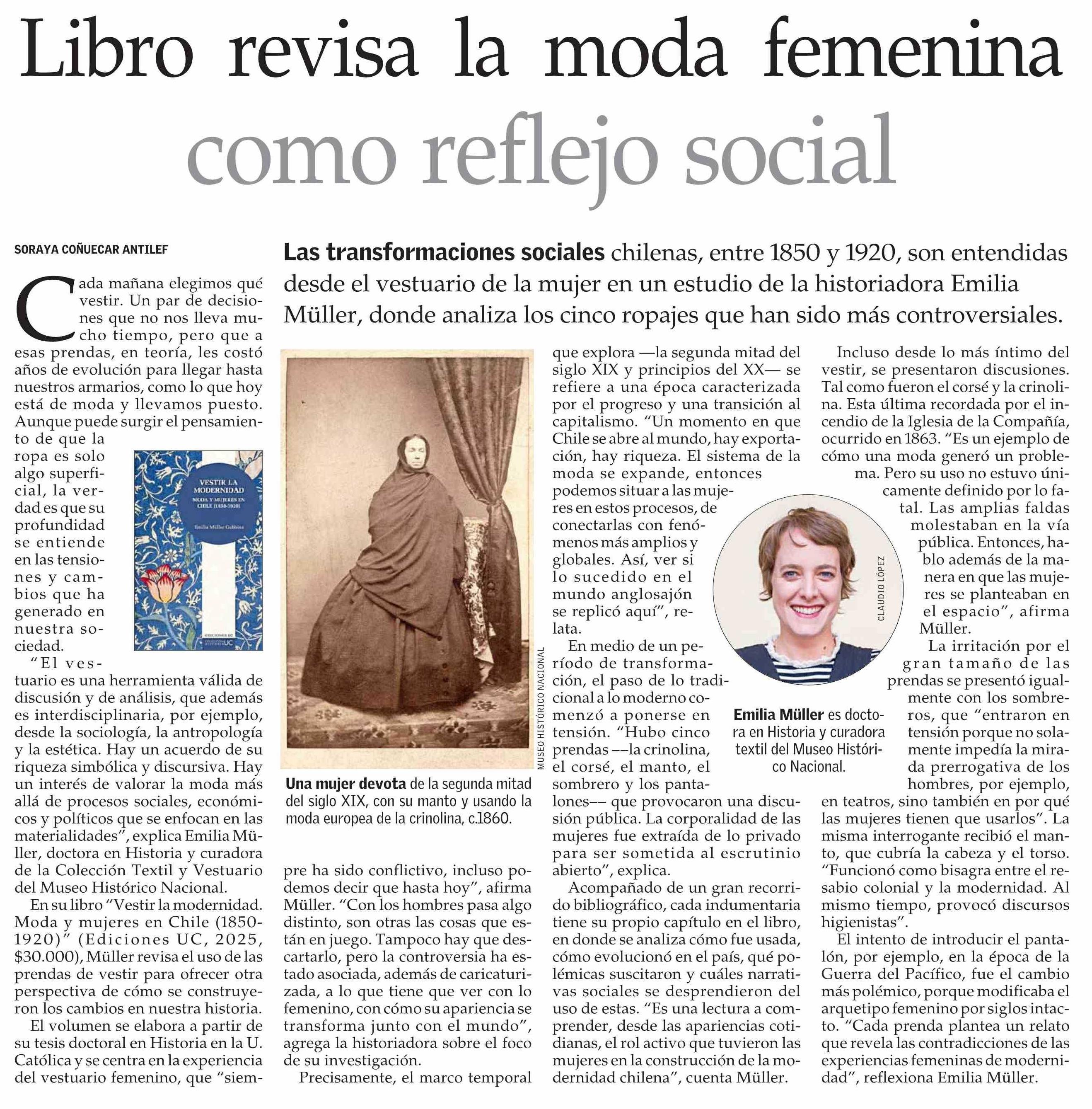 Libro revisa la moda femenina como reflejo social 13-02-2026 El Mercurio |