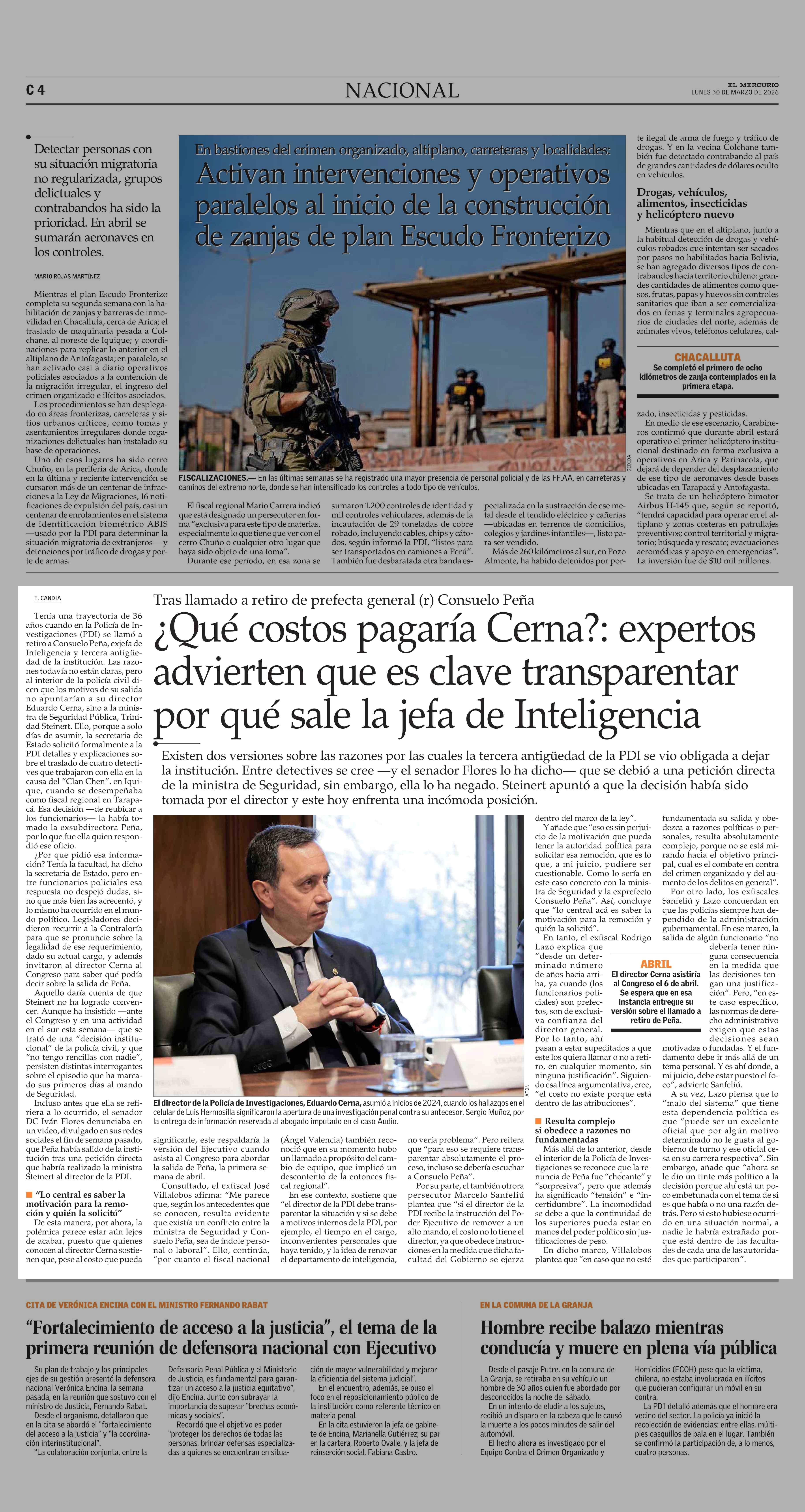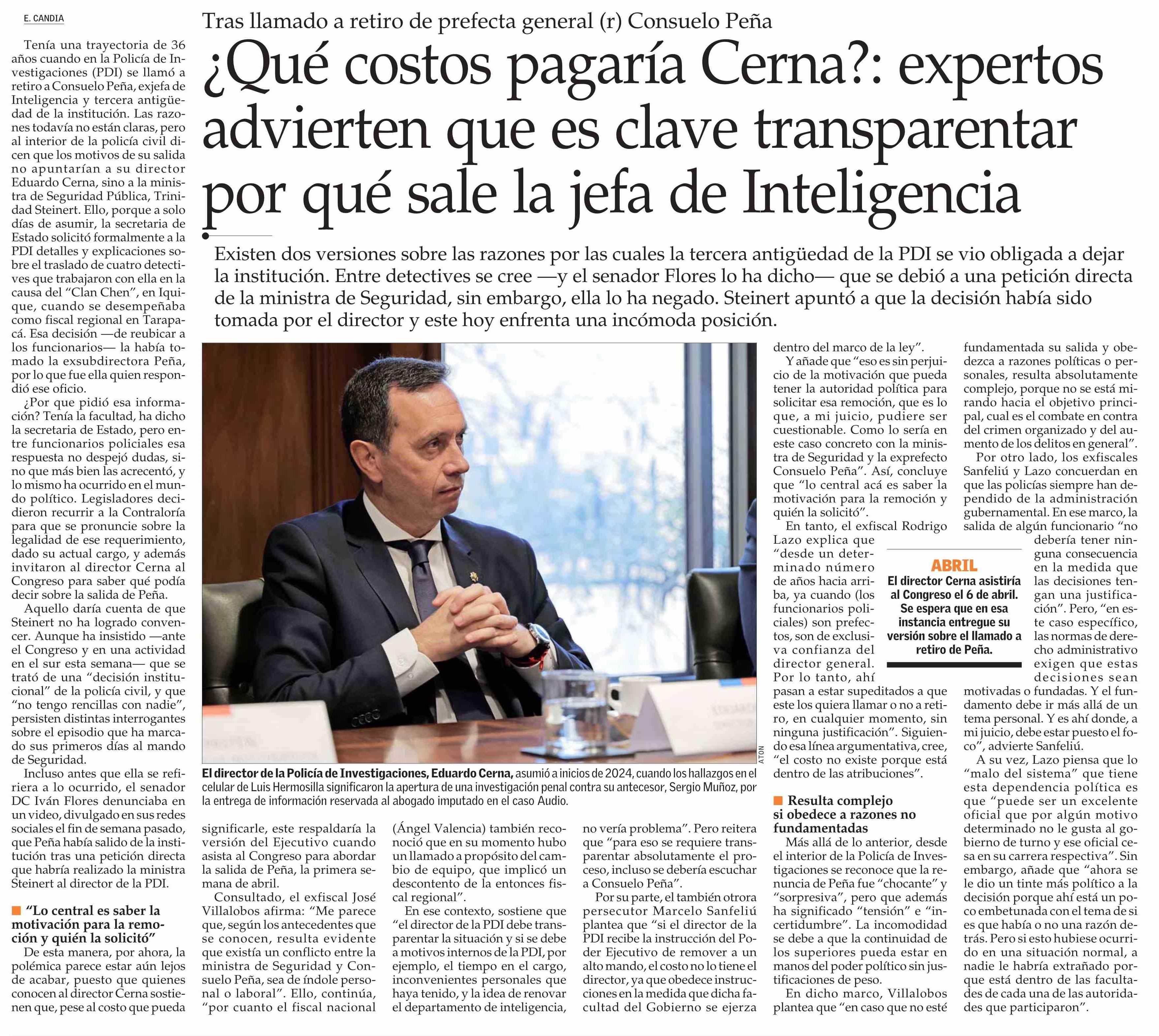 Título: ¿Qué costos pagaría Cerna?: expertos advierten que es clave transparentar por qué sale la jefa de Inteligencia