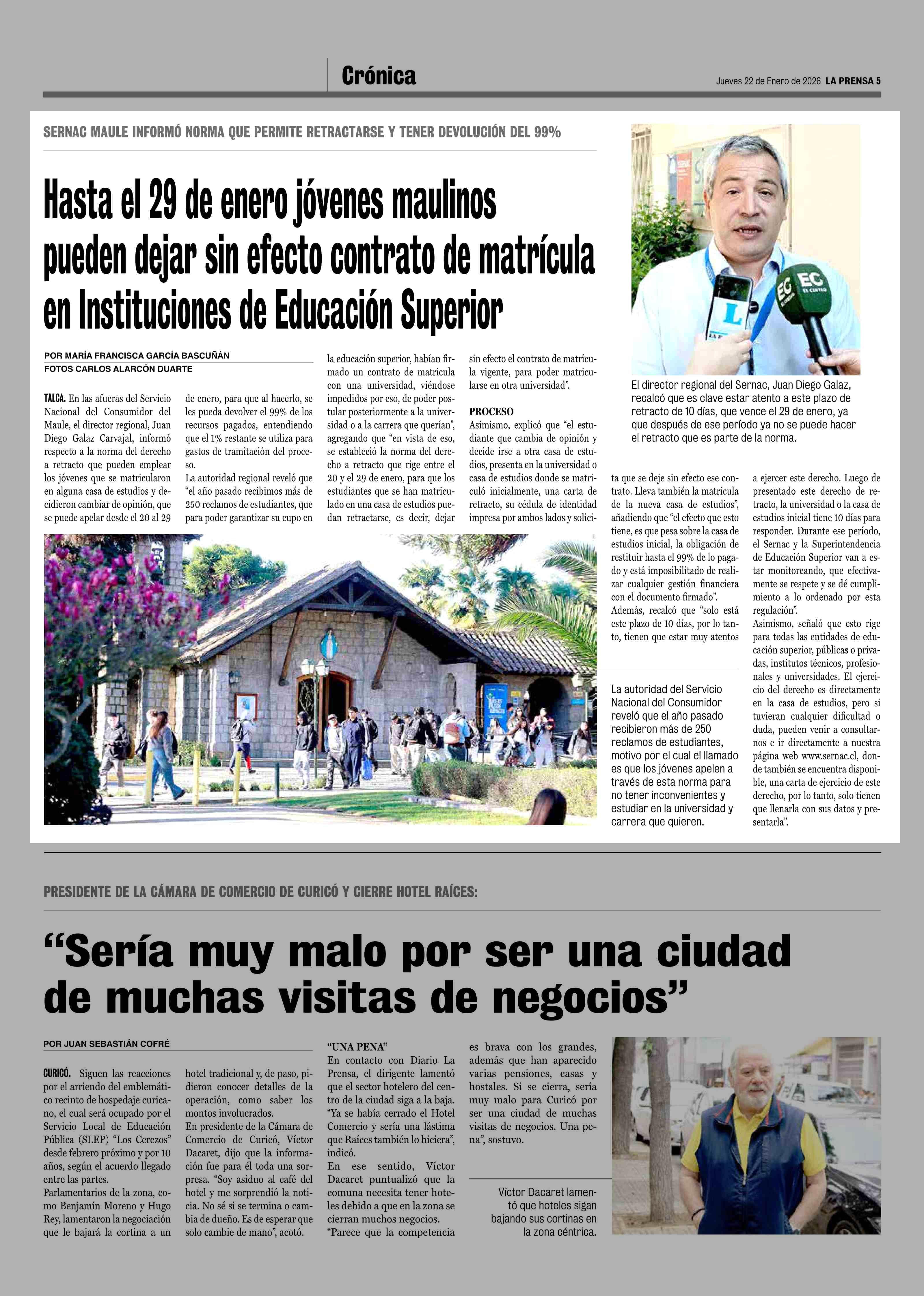 Hasta el 29 de enero jóvenes maulinos pueden dejar sin efecto contrato de matrícula en Instituciones de Educación Superior 22-01-2026 La Prensa de Curicó |