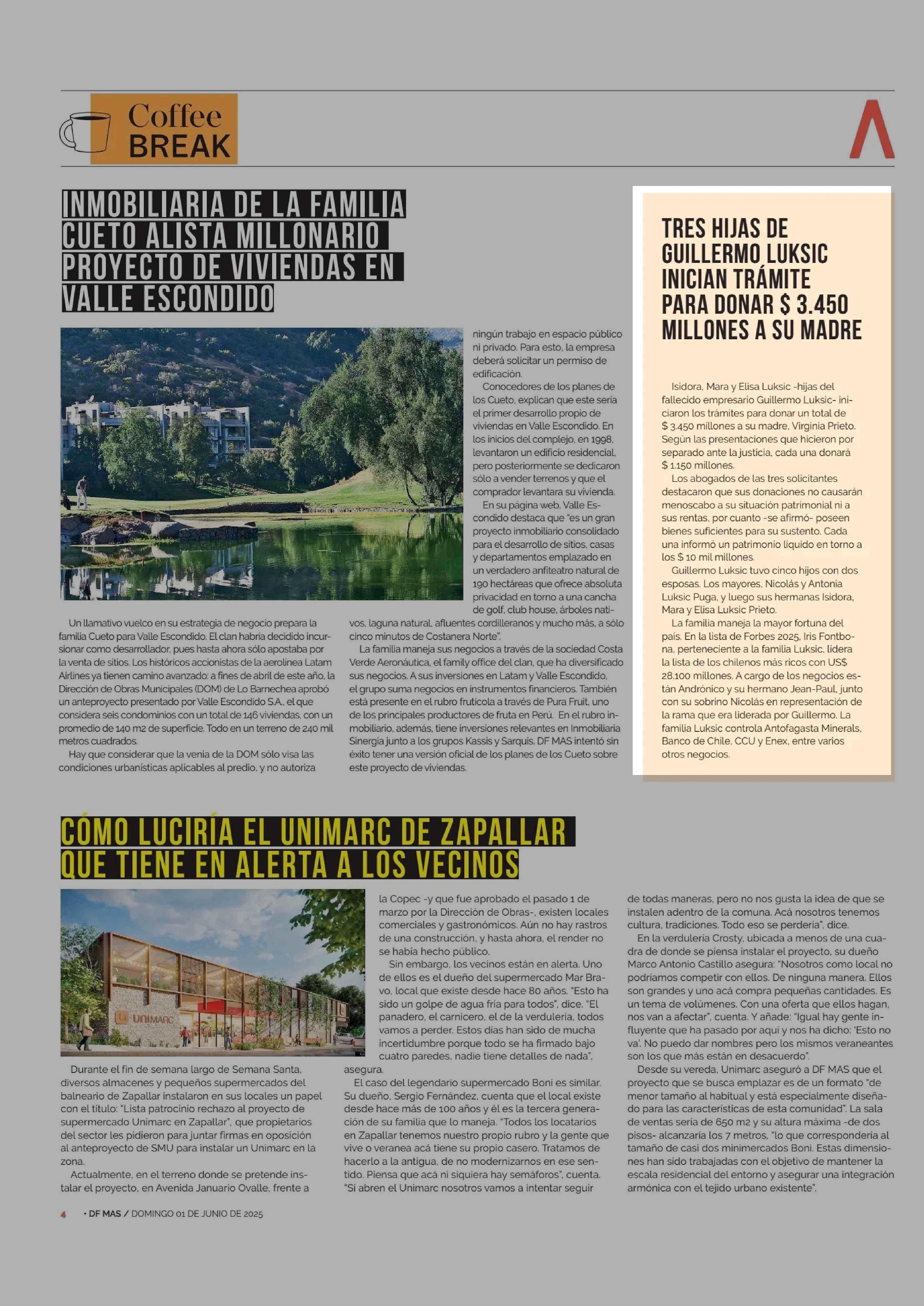 TRES HIJAS DE GUILLERMO LUKSIC INICIAN TRAMITE PARA DONAR $ 3.450 MILLONES A SU MADRE 01-06-2025 Diario Financiero |