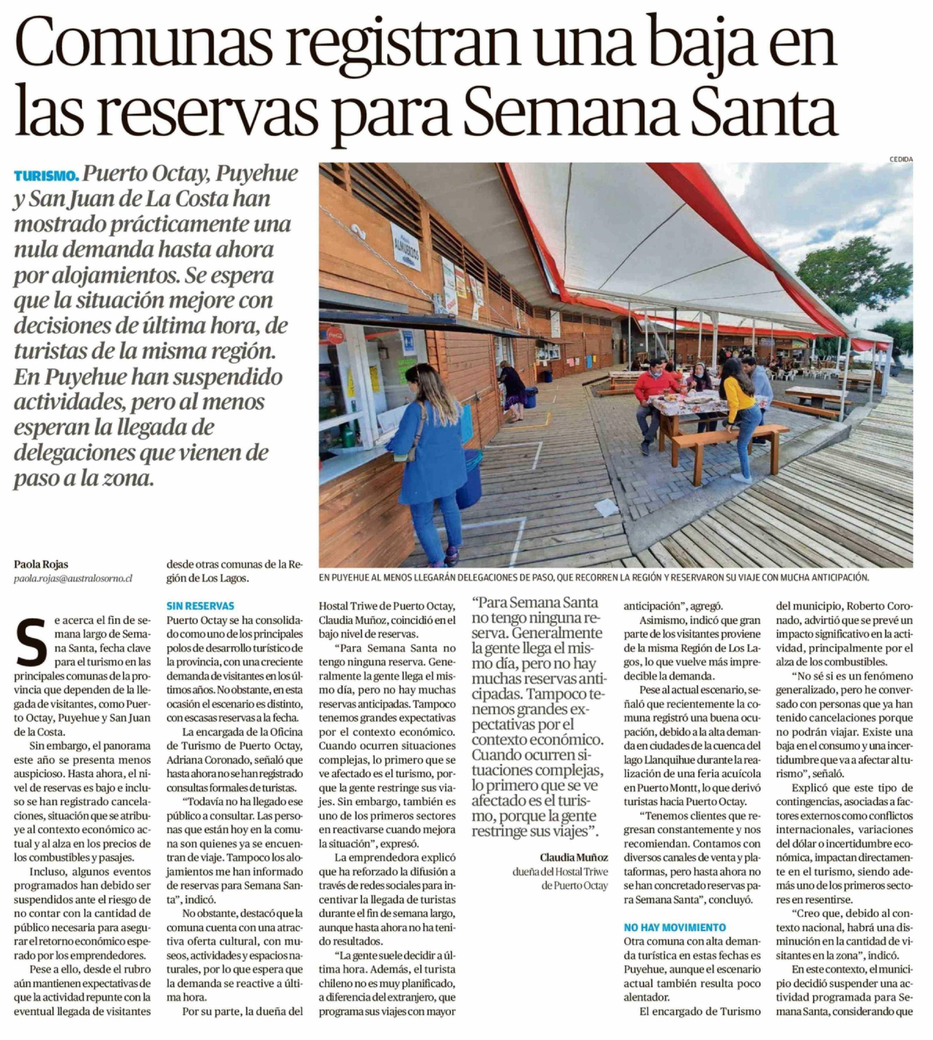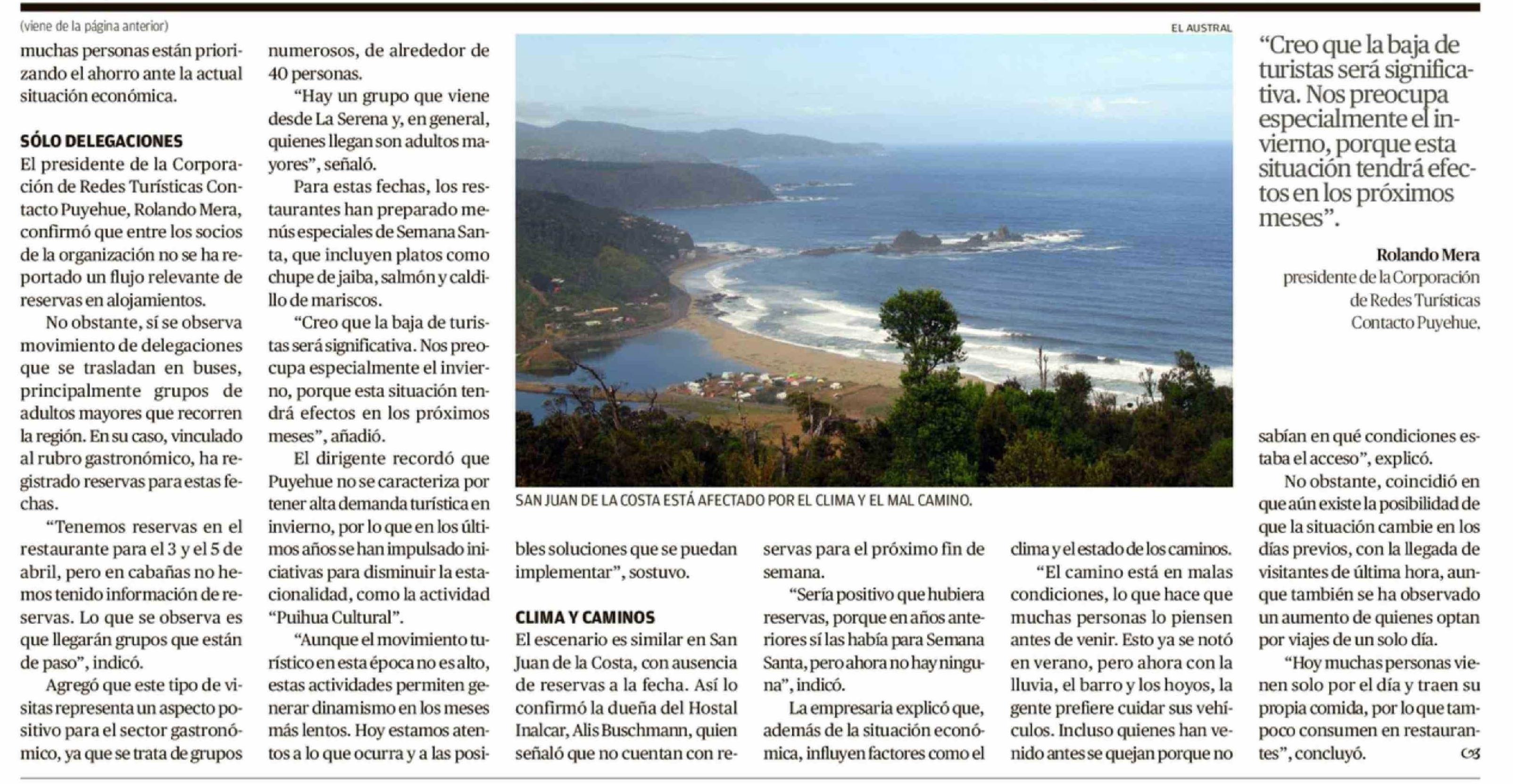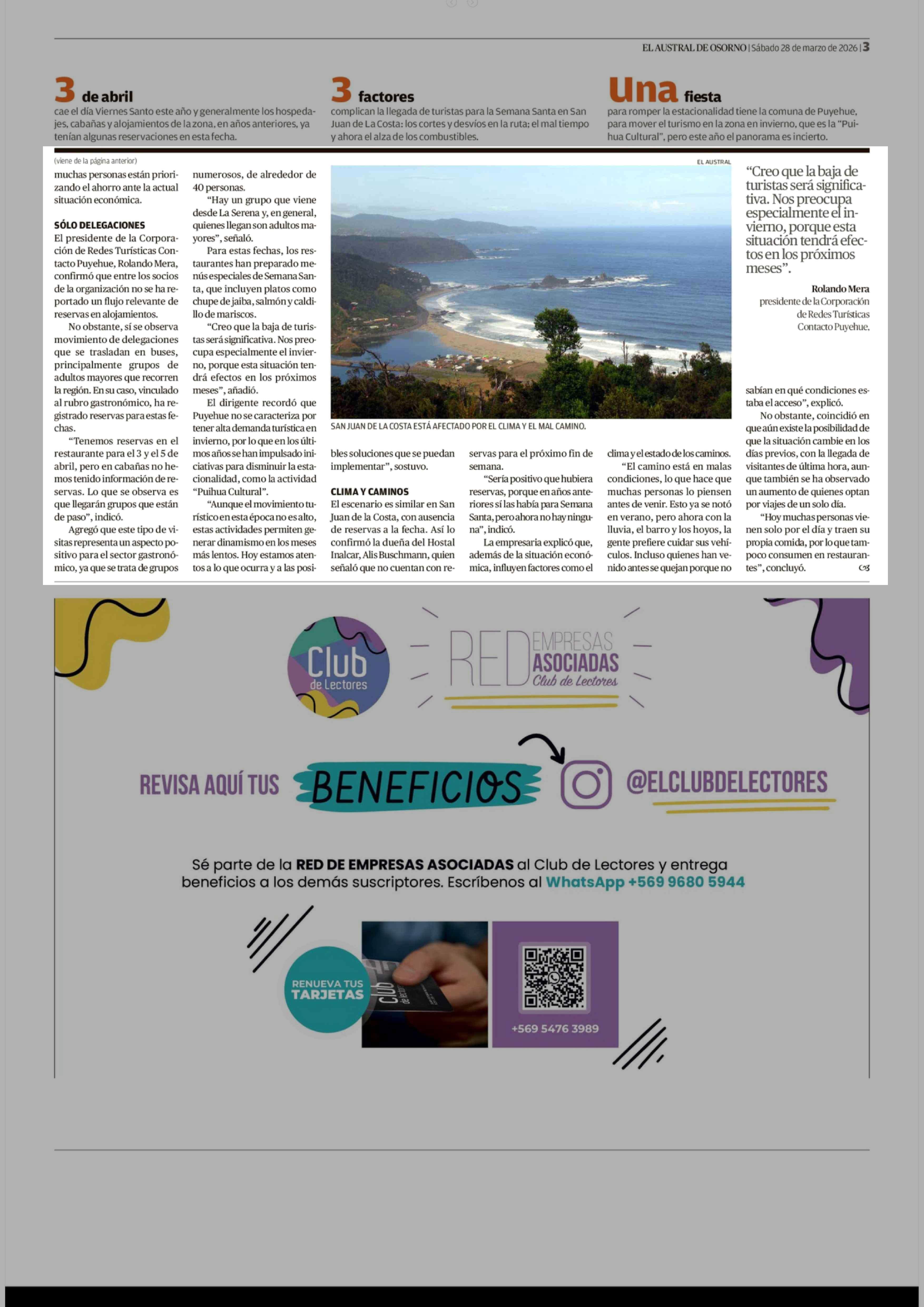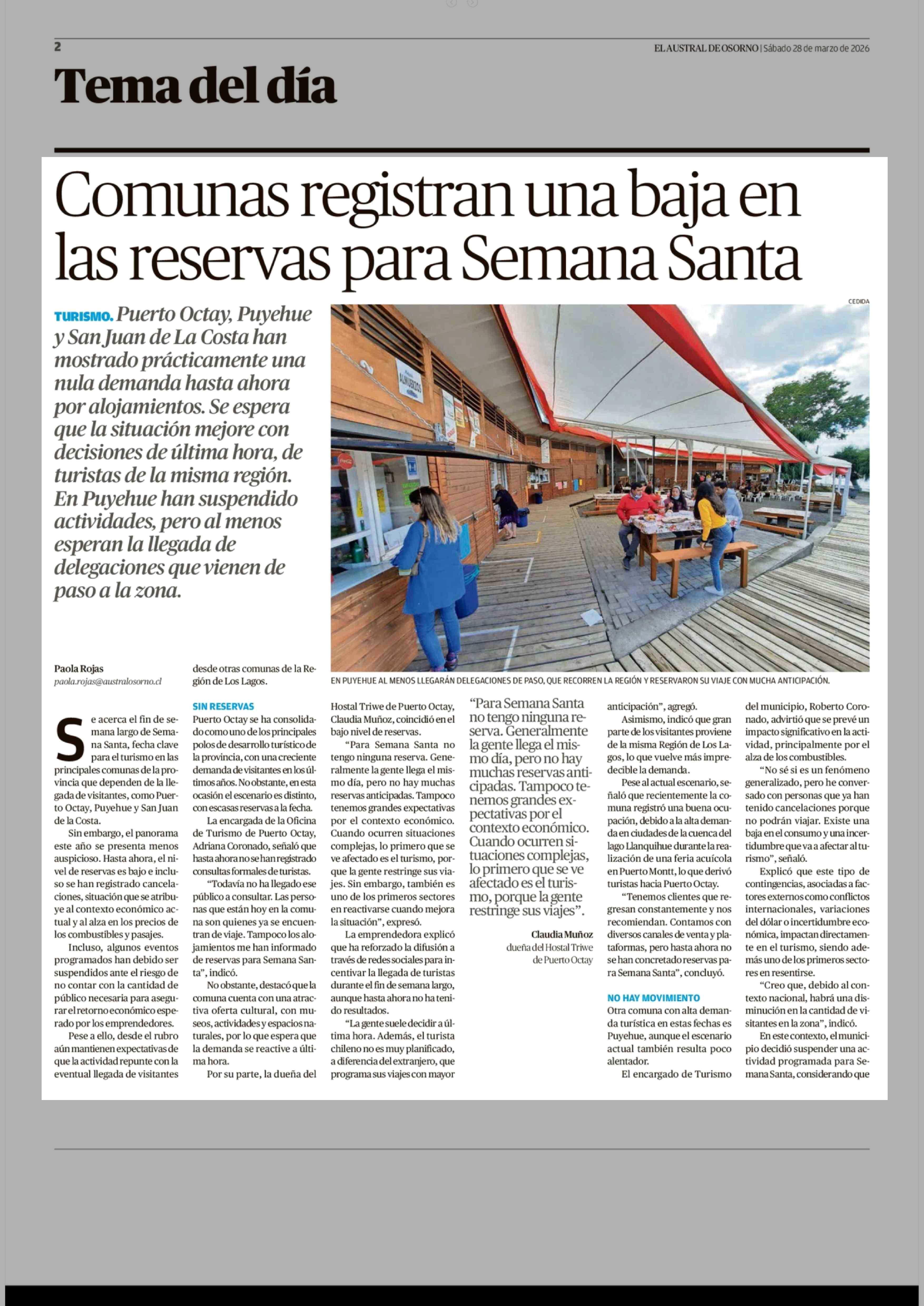 Comunas registran una baja en las reservas para Semana Santa 28-03-2026 El Austral de Osorno |