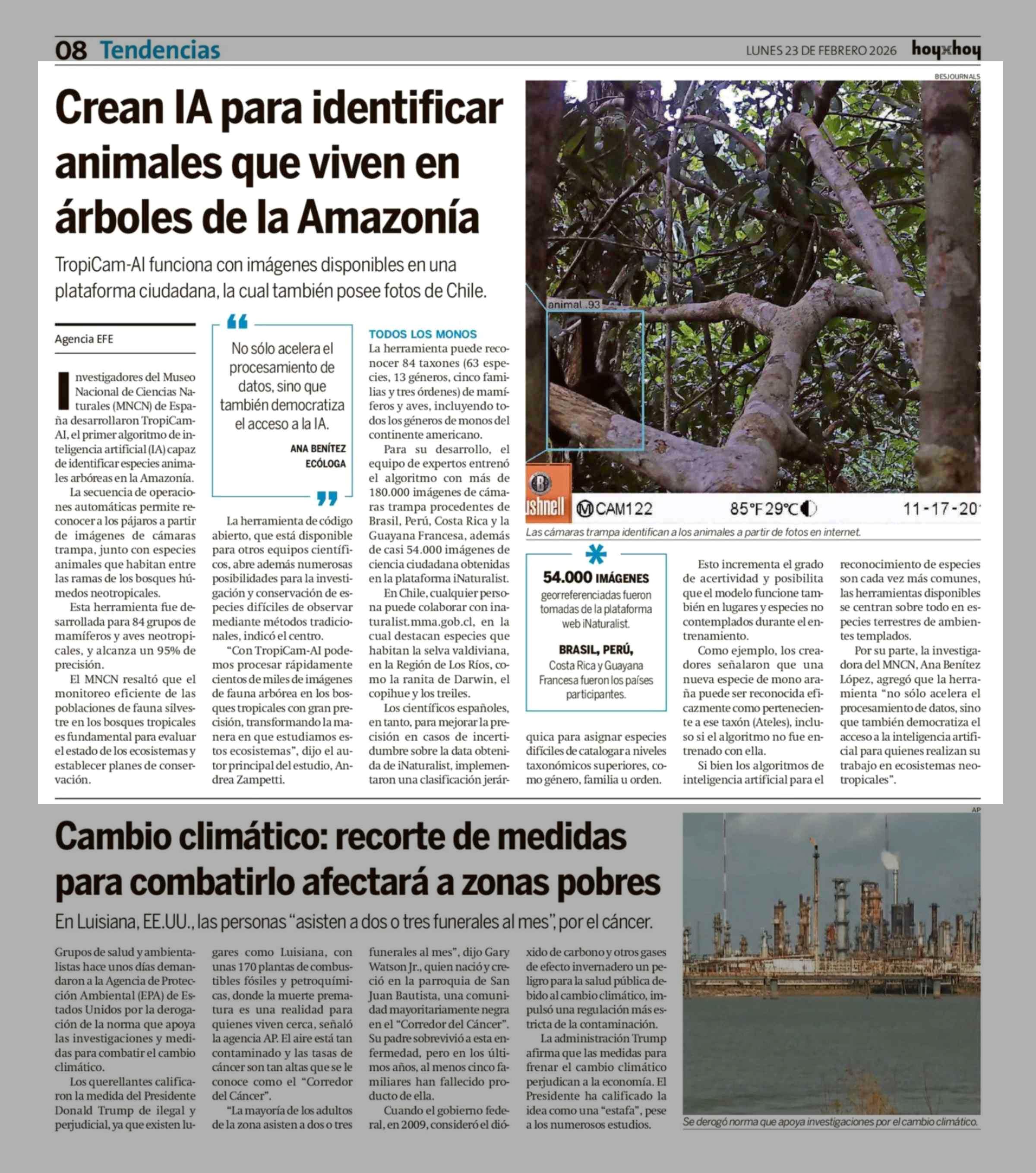 Título: Crean IA para identificar animales que viven en árboles de la Amazonía