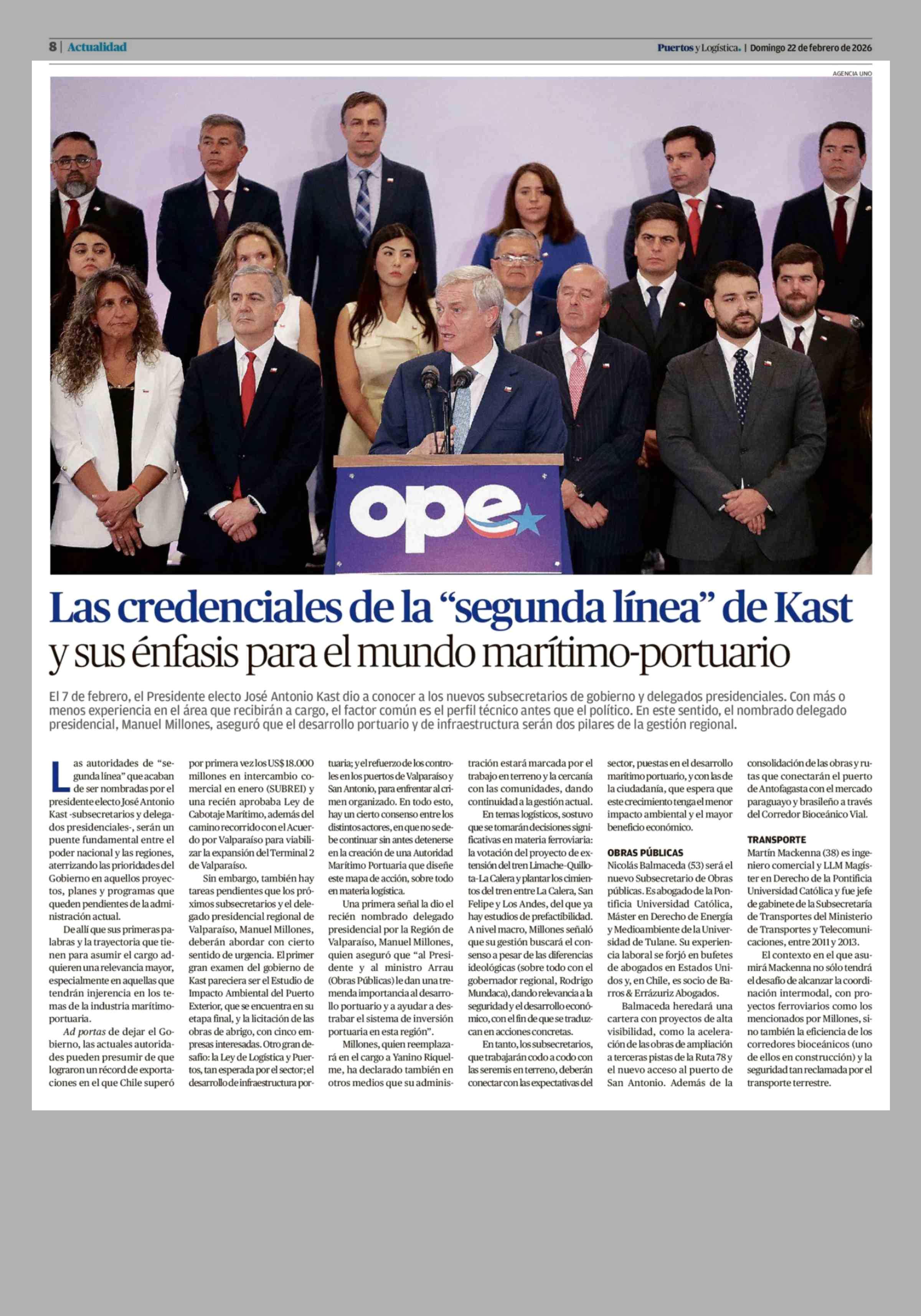 Título: Las credenciales de la "segunda línea" de Kast y sus énfasis para el mundo marítimo-portuario