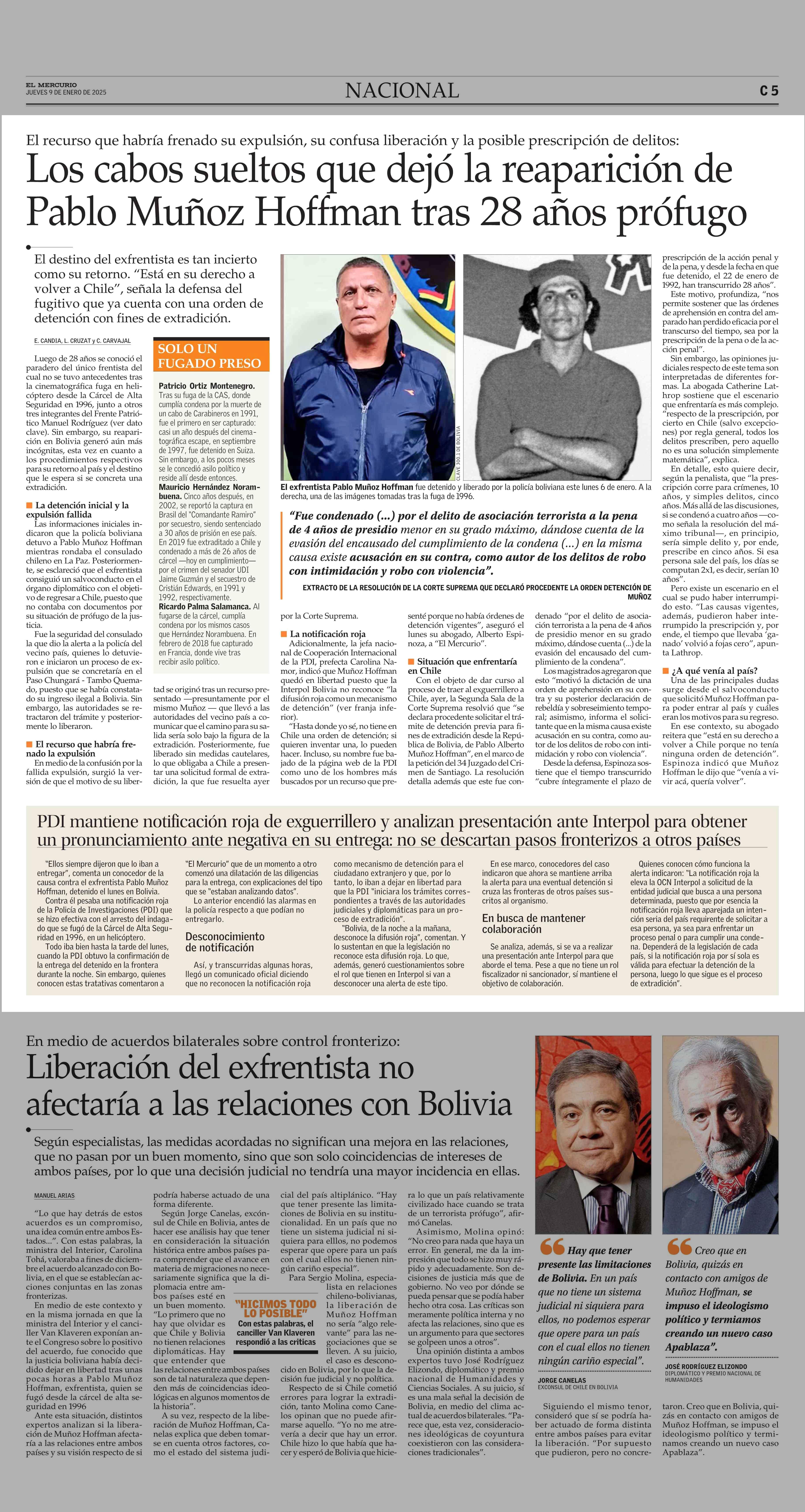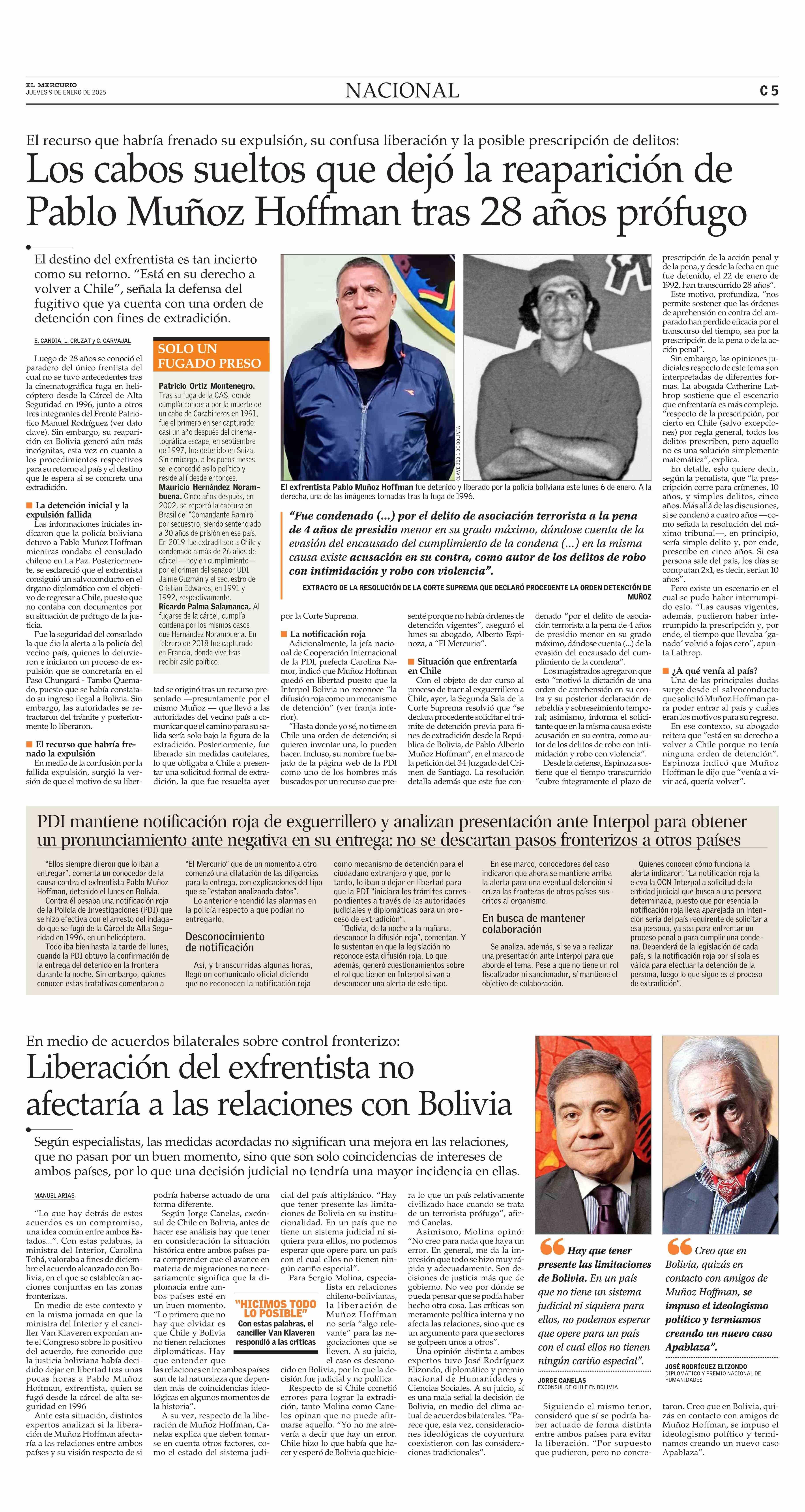 Los cabos sueltos que dejó la reaparición de Pablo Muñoz Hoffman tras 28 años prófugo 09-01-2025 El Mercurio |