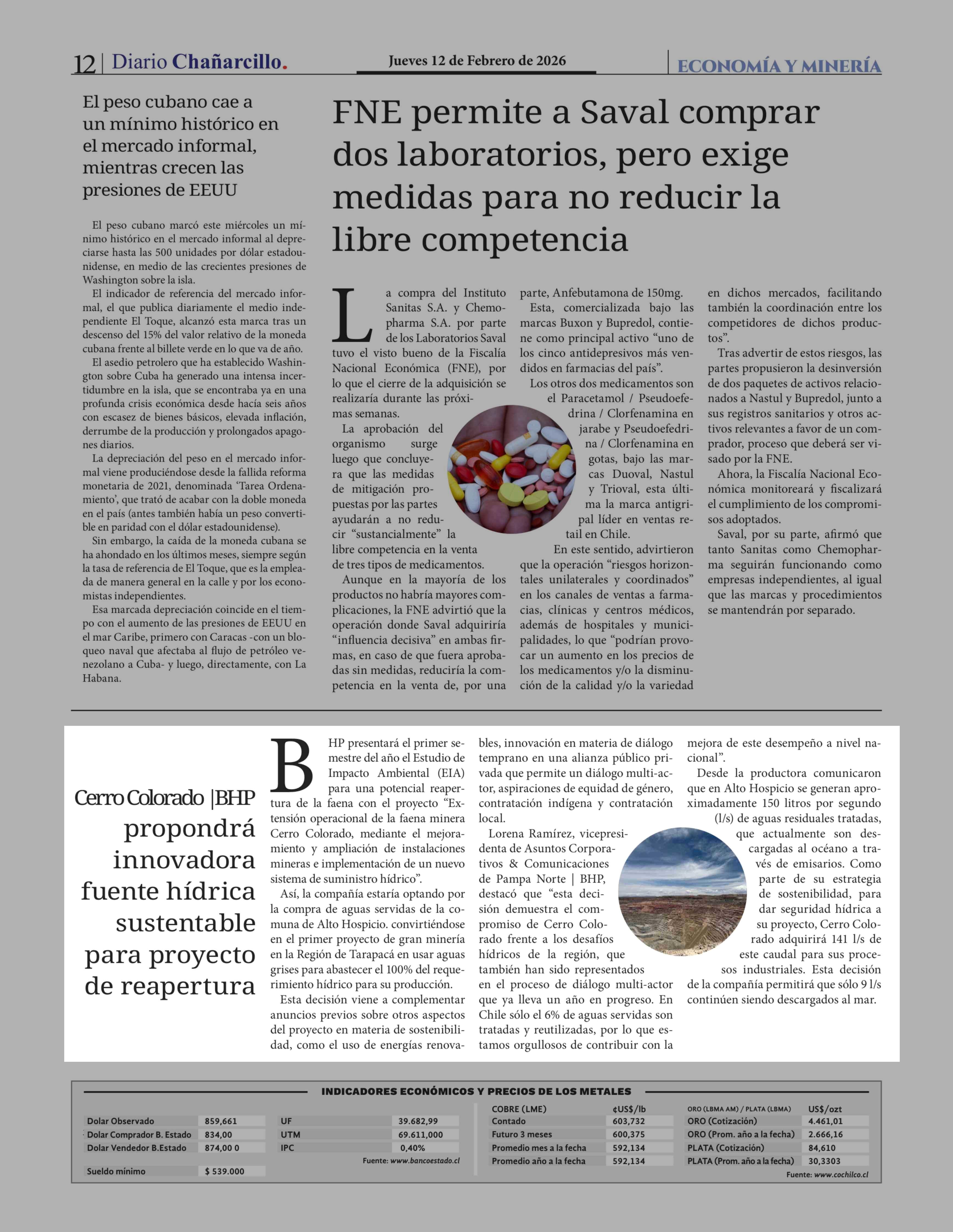 Cerro Colorado |BHP propondrá innovadora fuente hídrica sustentable para proyecto de reapertura 12-02-2026 Diario Chañarcillo |