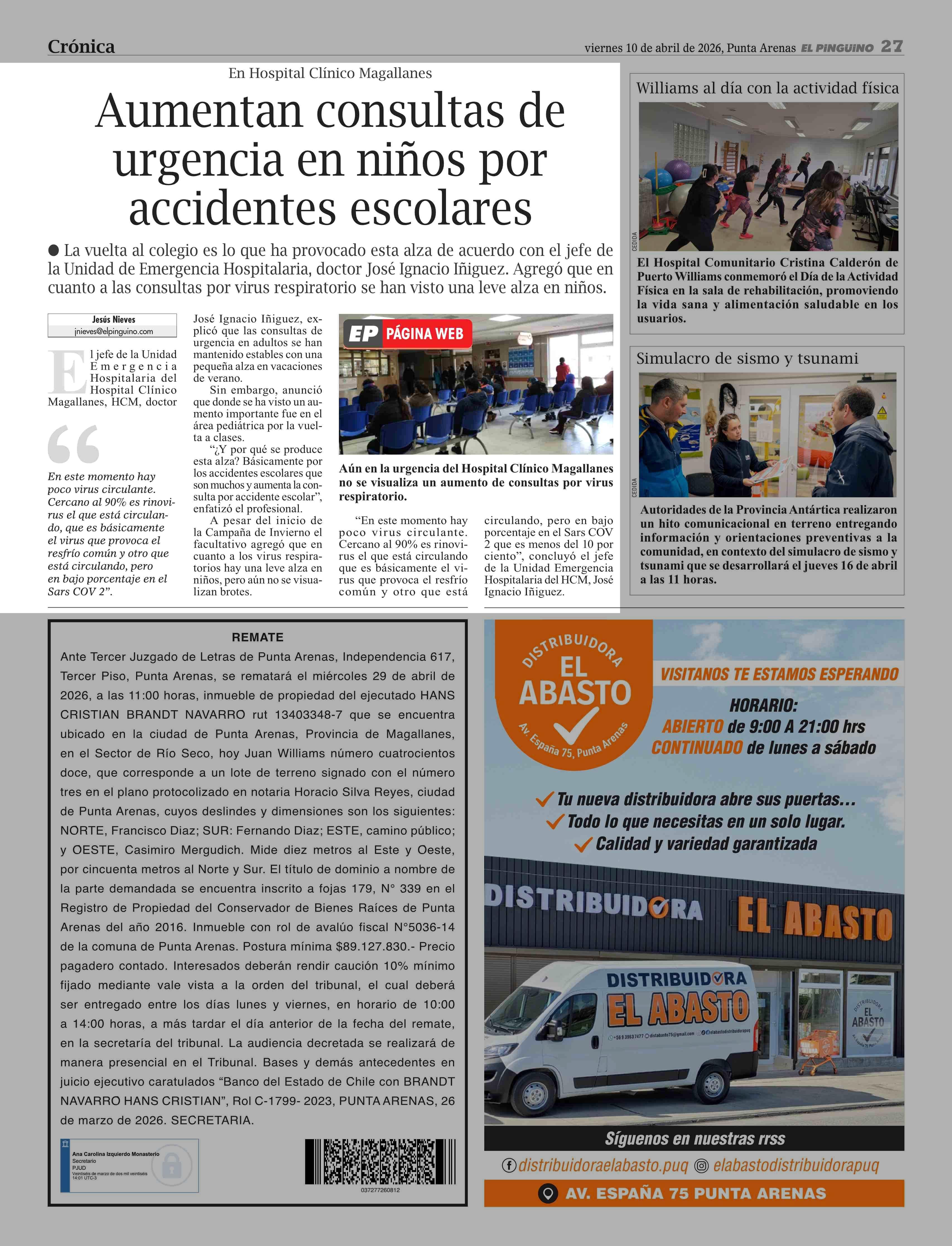 Fecha: 10-04-2026 Sector: Noticia general Región: Región de Magallanes y de la Antártica Chilena
