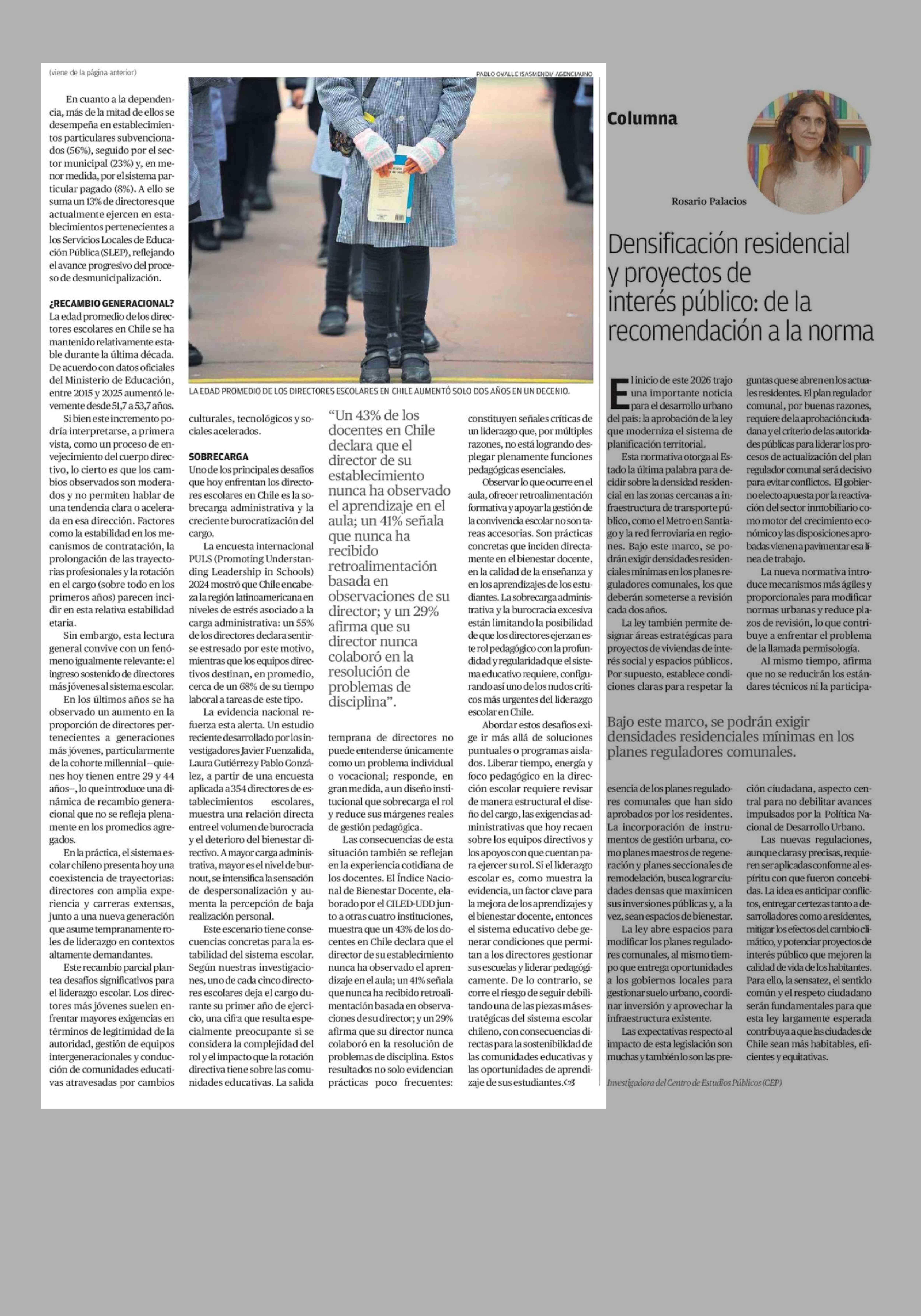 Directores escolares en Chile: quiénes son, qué los caracteriza y cuáles son sus desafíos 01-02-2026 El Mercurio de Calama |