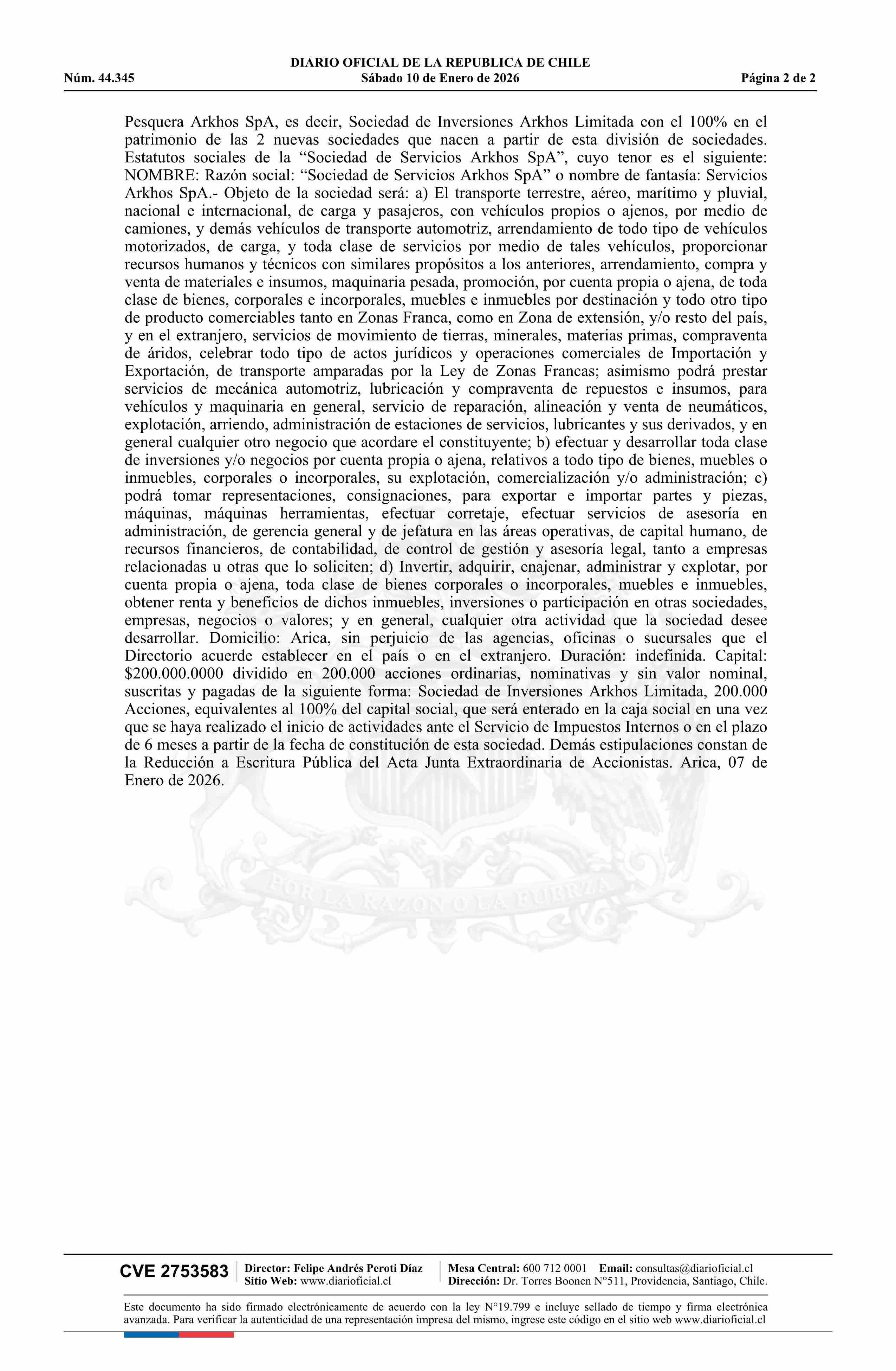 Sociedad de Servicios Arkhos SpA 10-01-2026 Diario Oficial Edición Electrónica |