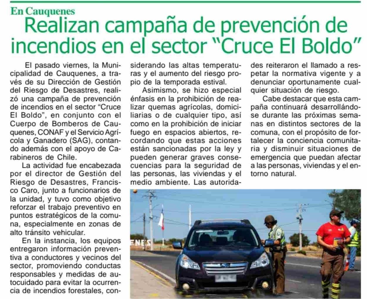 Realizan campaña de prevención de incendios en el sector “Cruce El Boldo” 25-01-2026 Maule Hoy |