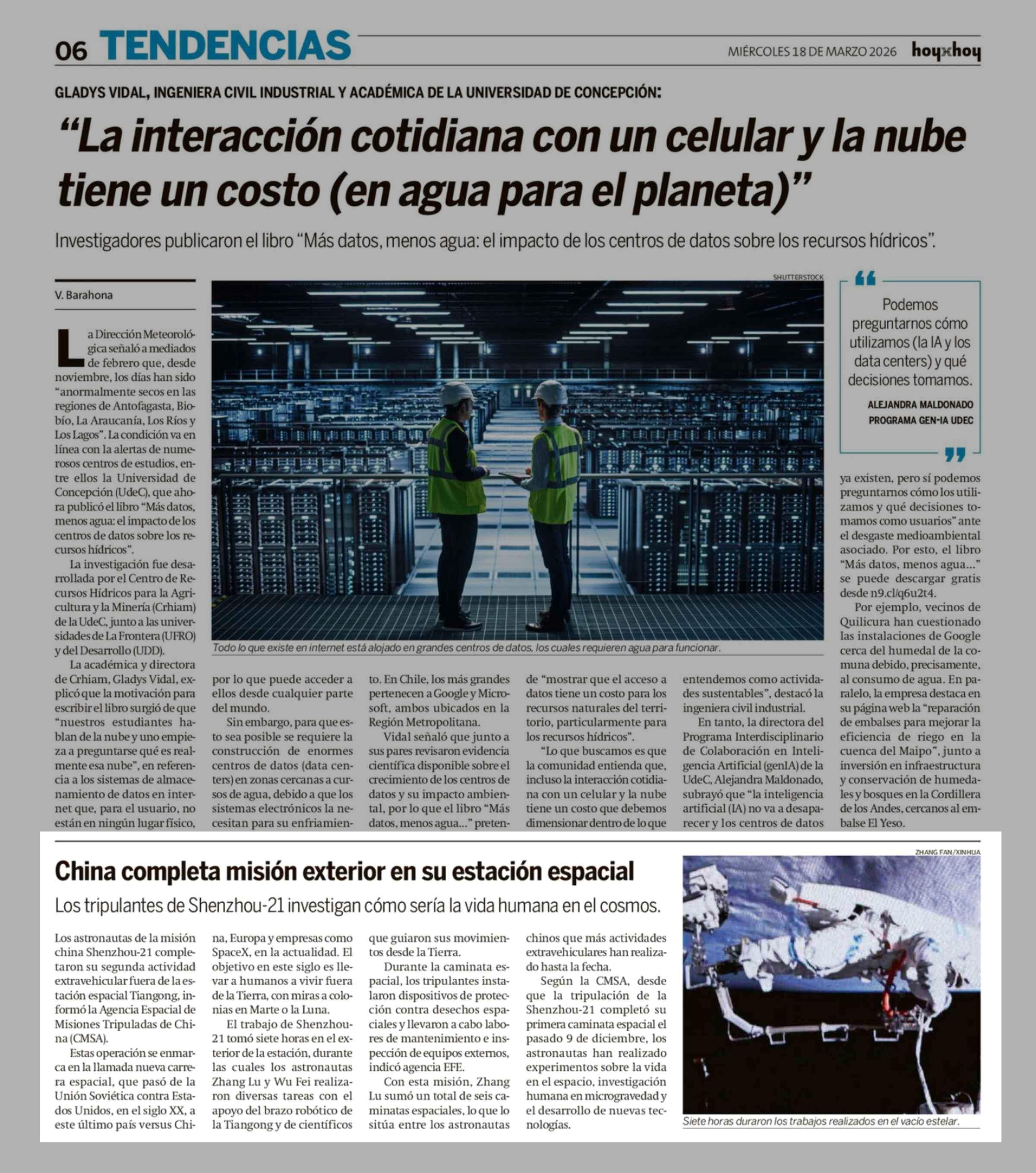 China completa mision exterior en su estación espacial 18-03-2026 Hoy x Hoy |