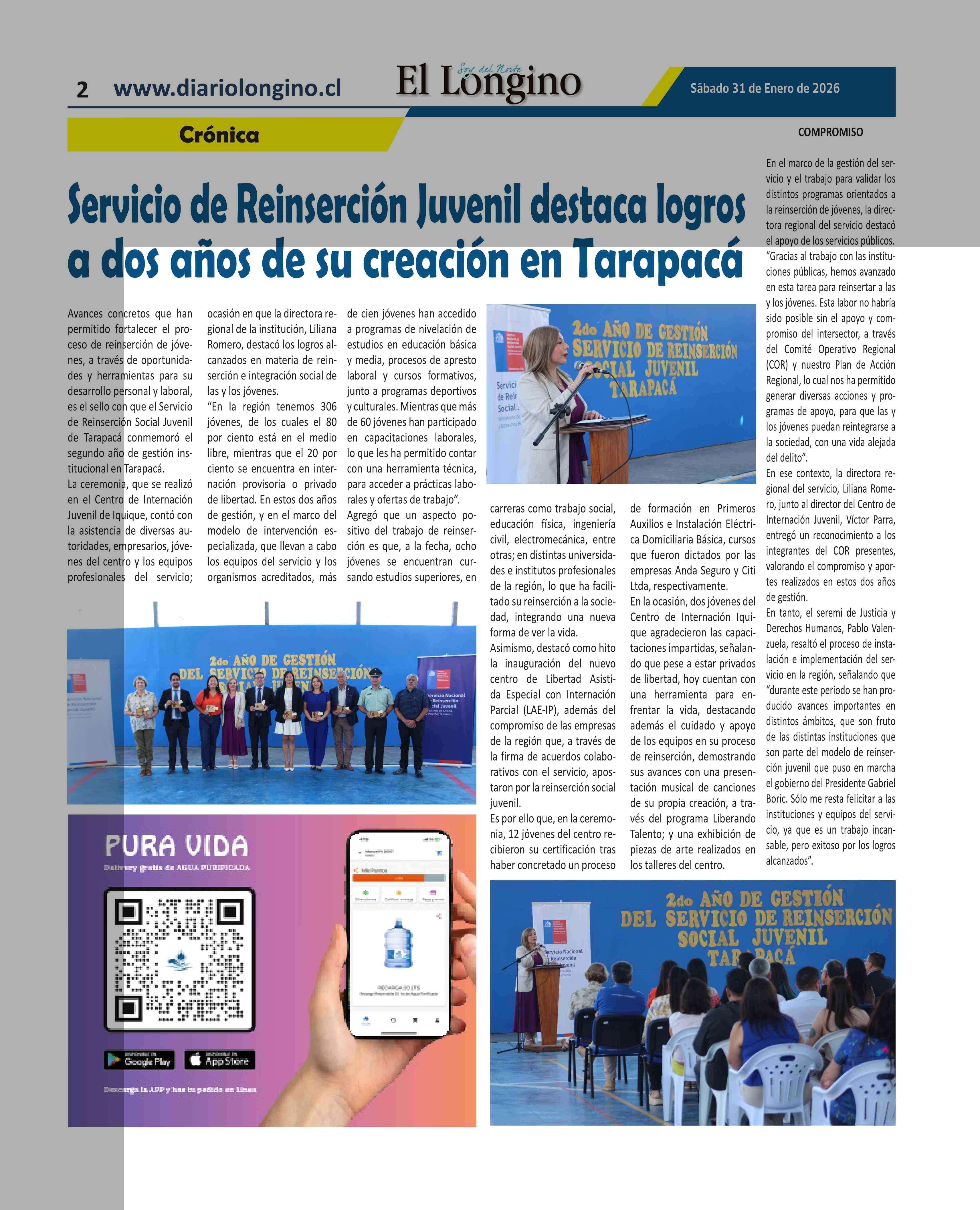 Servicio de Reinserción Juvenil destaca logros a dos años de su creación en Tarapacá 31-01-2026 El Longino |
