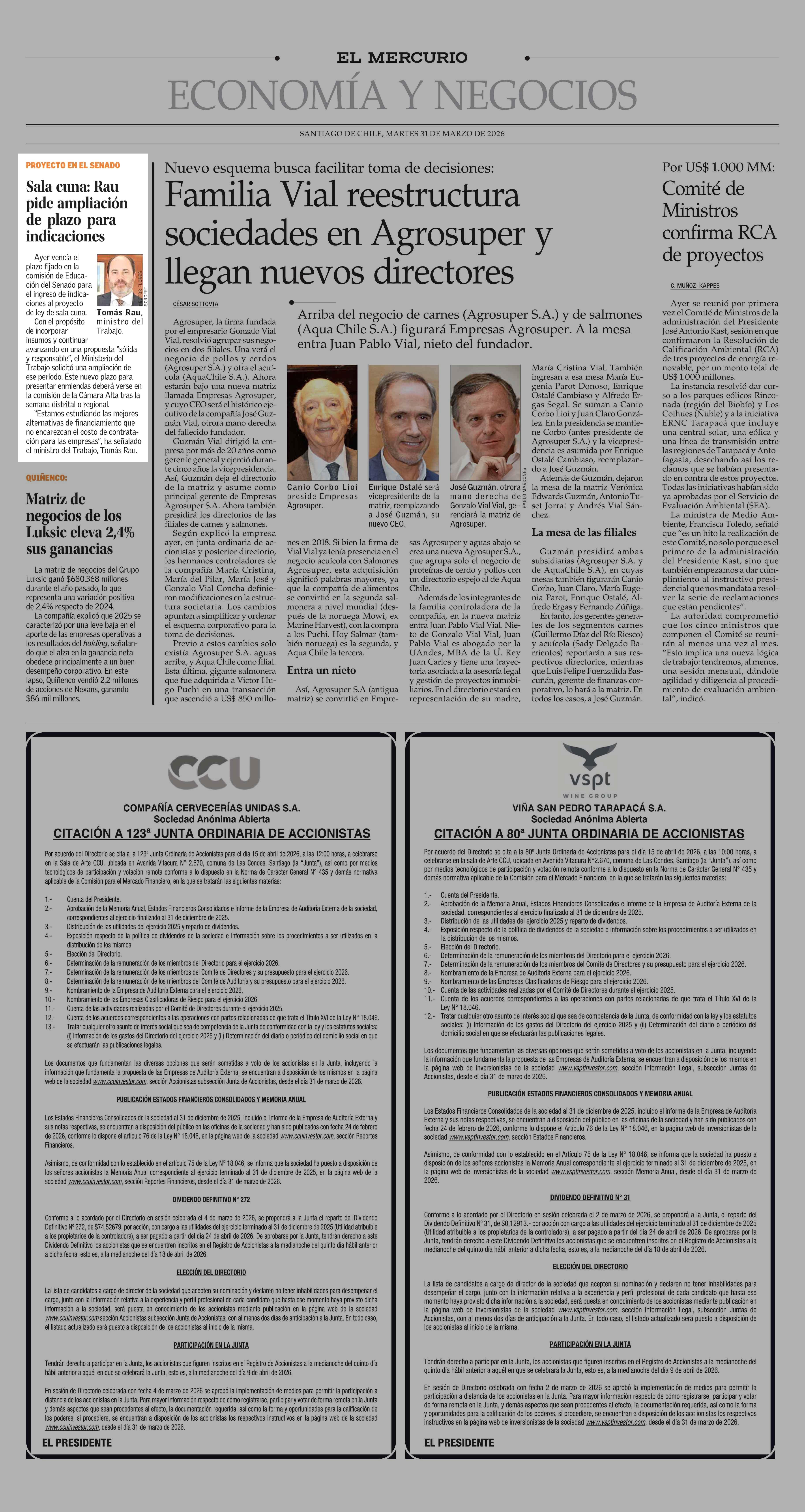 Sala cuna: Rau pide ampliación de plazo para indicaciones 31-03-2026 El Mercurio |