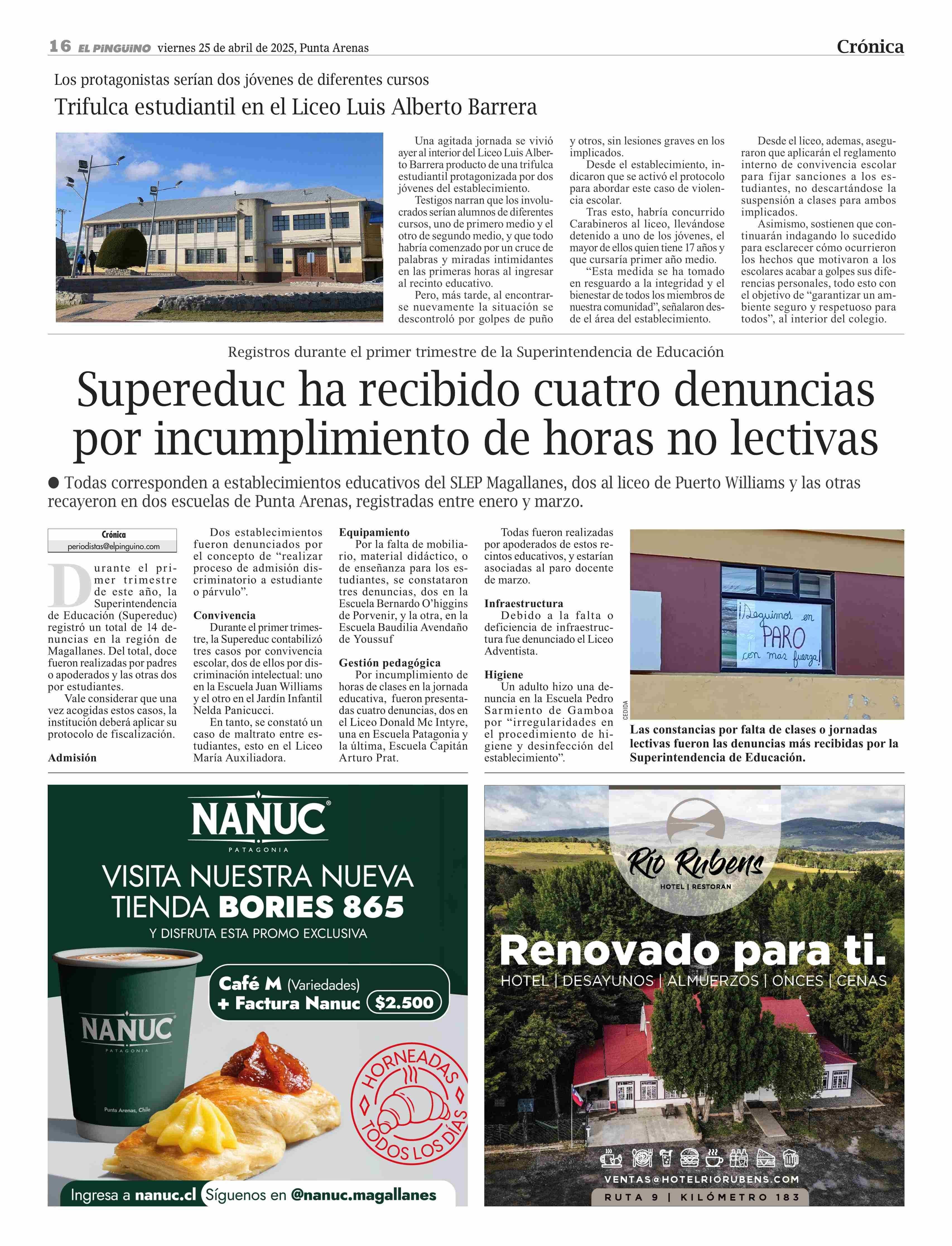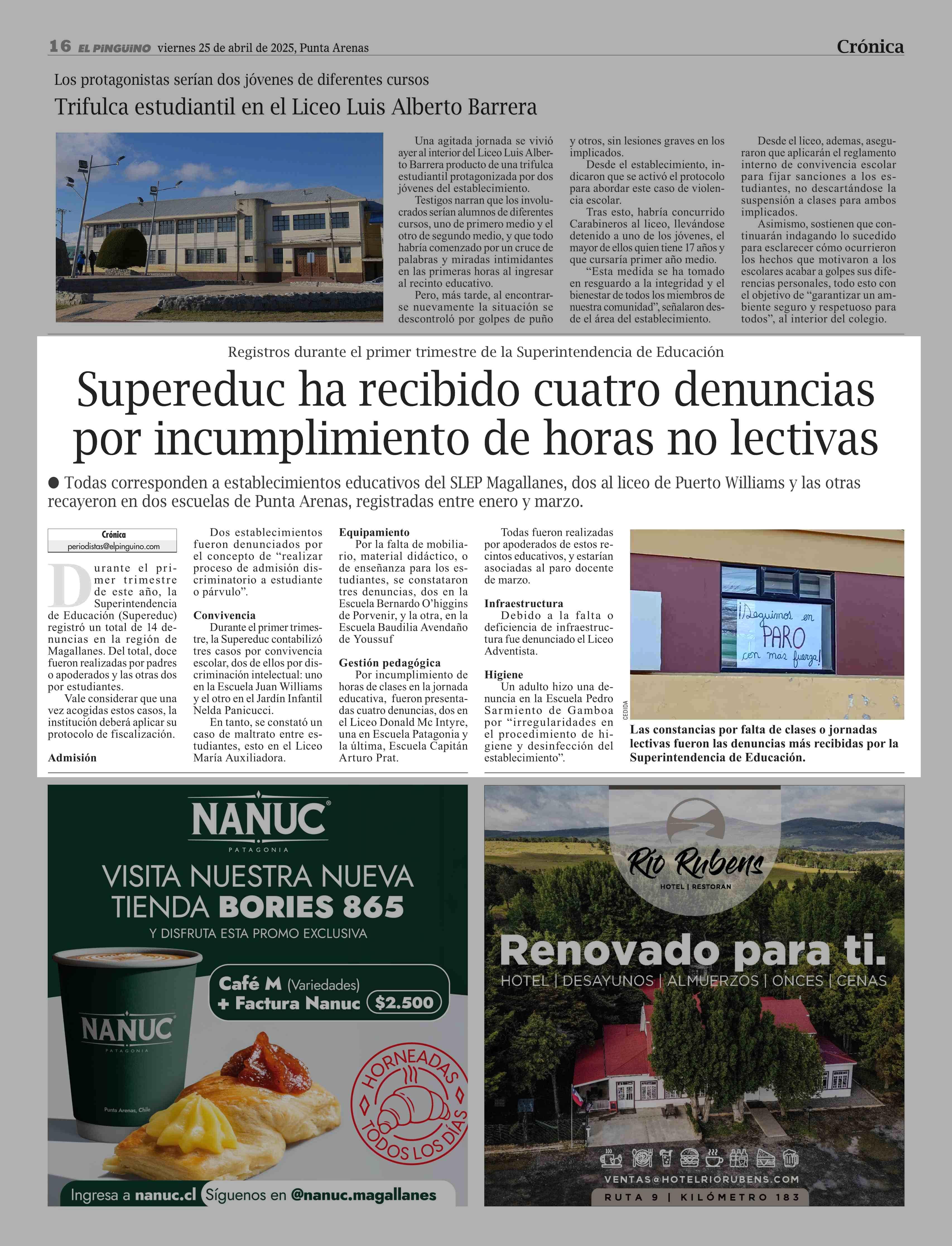 Supereduc ha recibido cuatro denuncias por incumplimiento de horas no lectivas 25-04-2025 El Pingüino |