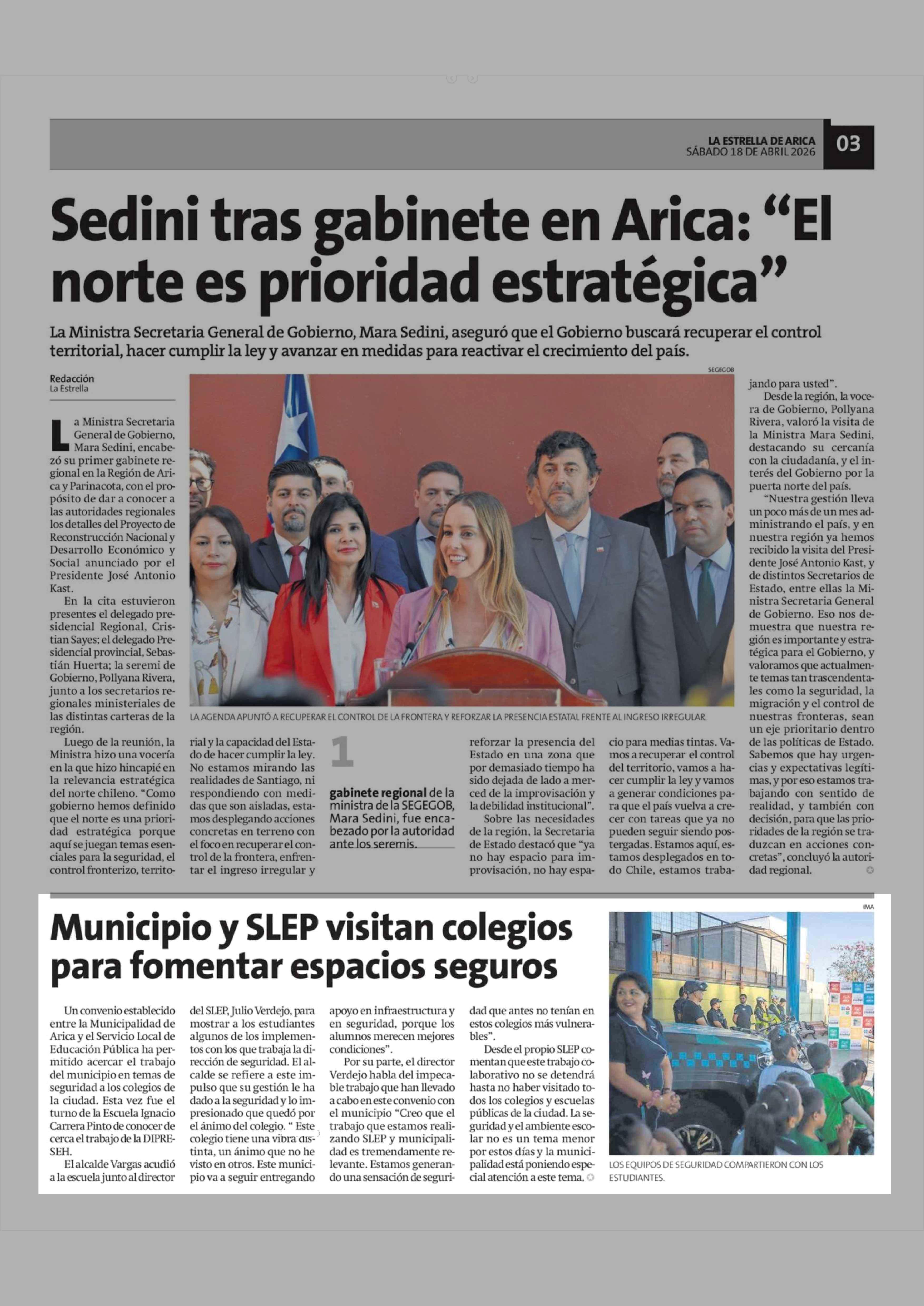 Municipio y SLEP visitan colegios para fomentar espacios seguros 18-04-2026 La Estrella de Arica |