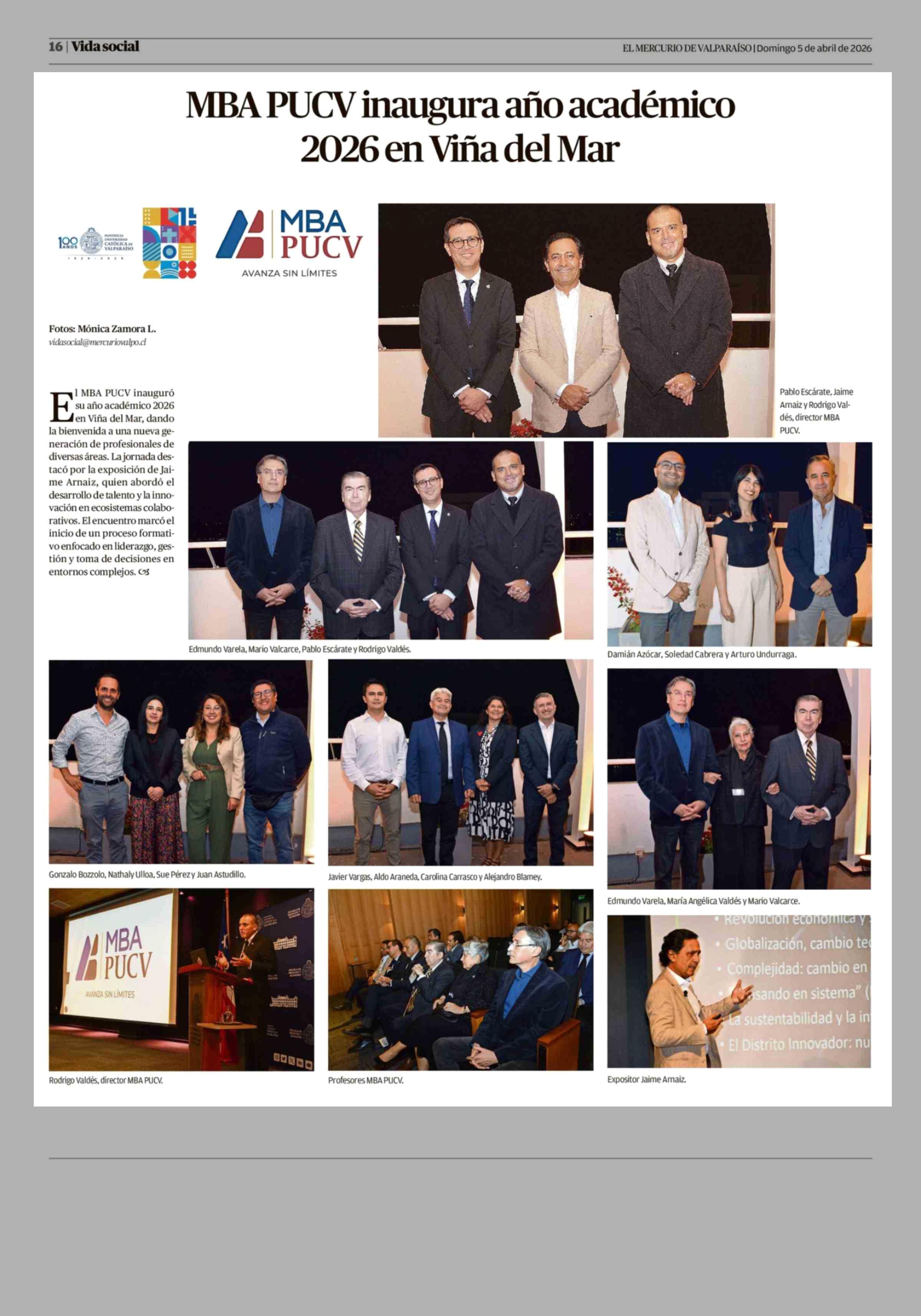 MBA PUCV inaugura año académico 2026 en Viña del Mar 05-04-2026 El Mercurio de Valparaíso |