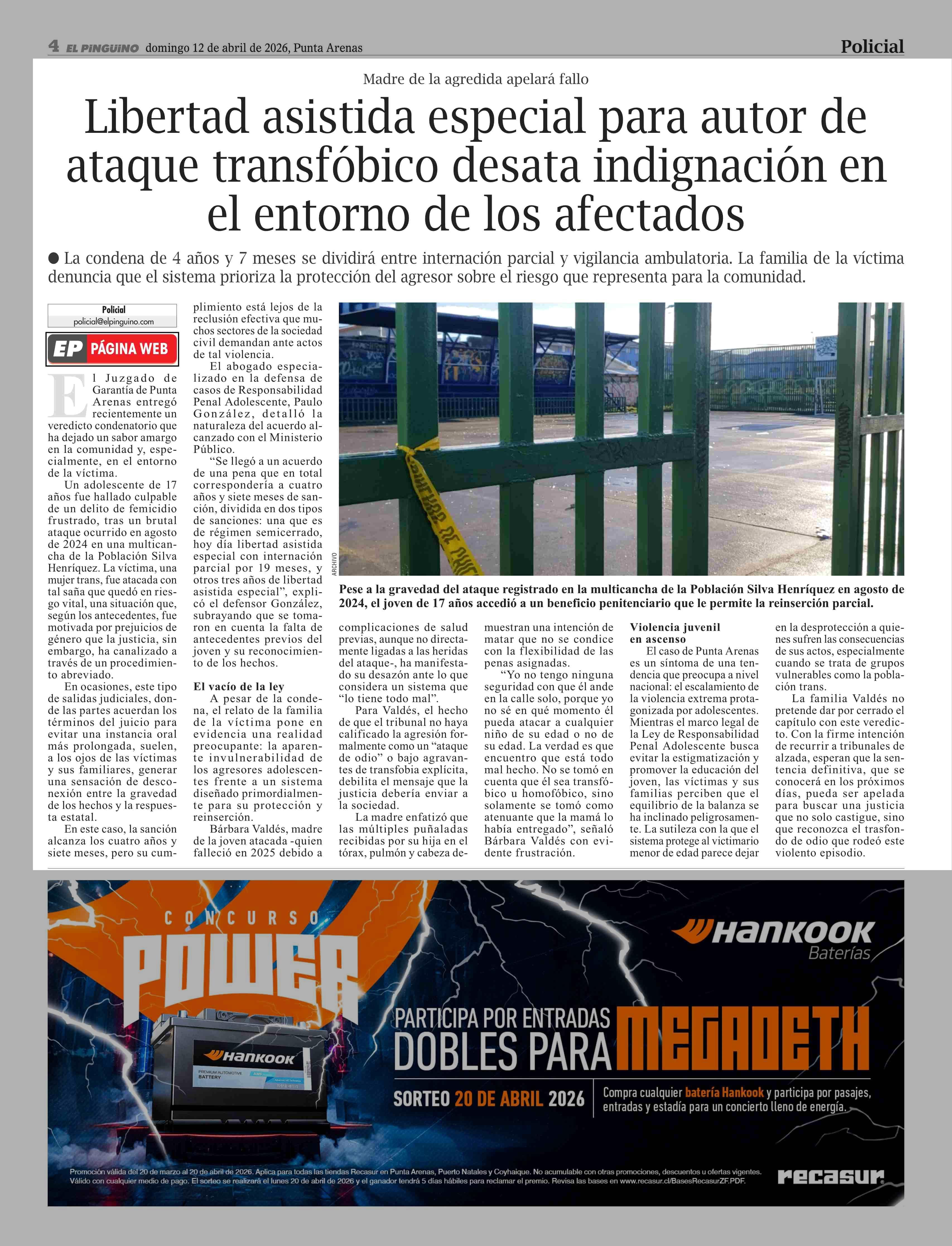 Libertad asistida especial para autor de ataque transfóbico desata indignación en el entorno de los afectados 12-04-2026 El Pingüino |