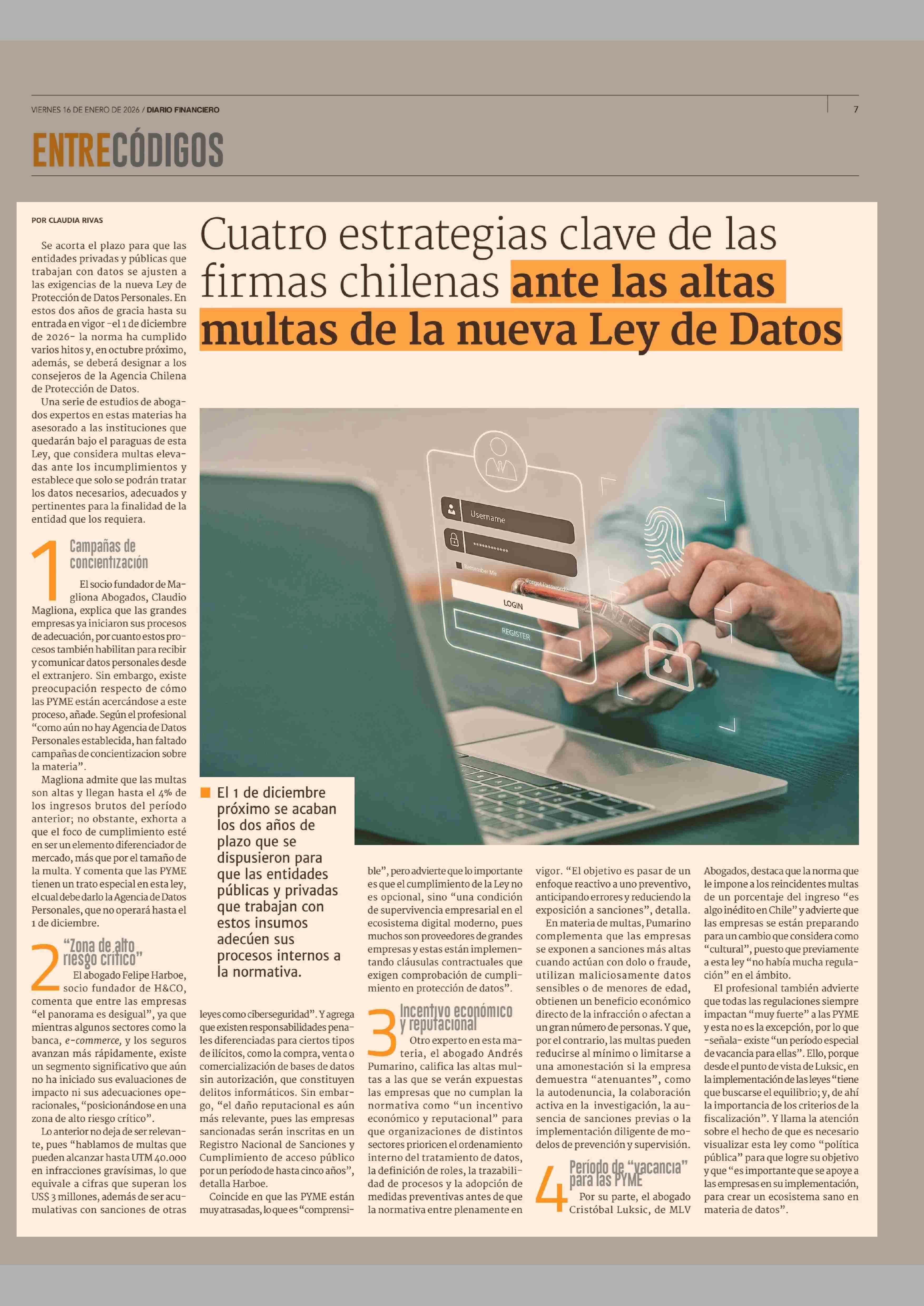Título: Cuatro estrategias clave de las firmas chilenas ante las altas multas de la nueva Ley de Datos