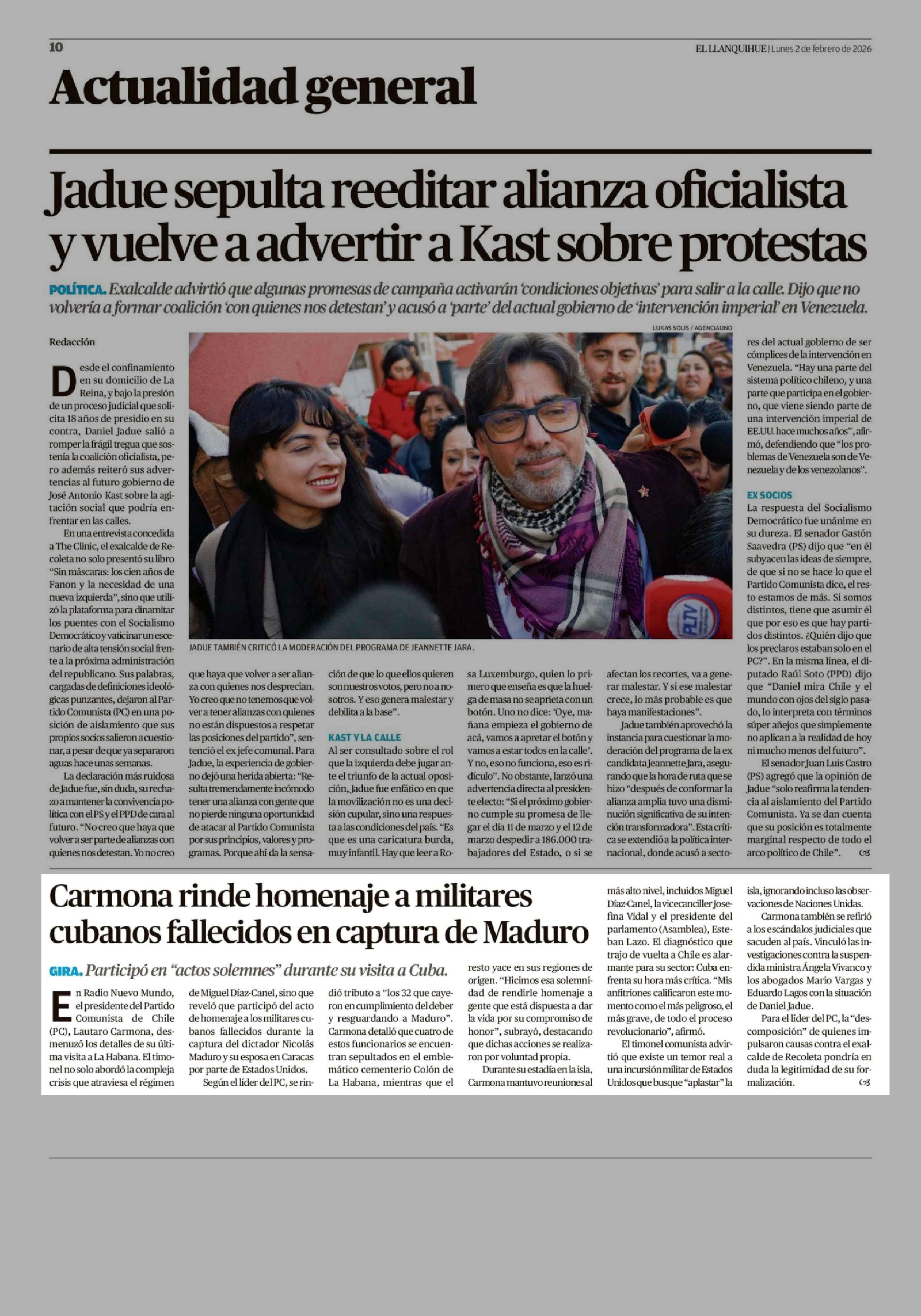 Carmona rinde homenaje a militares cubanos fallecidos en captura de Maduro 02-02-2026 El Llanquihue |