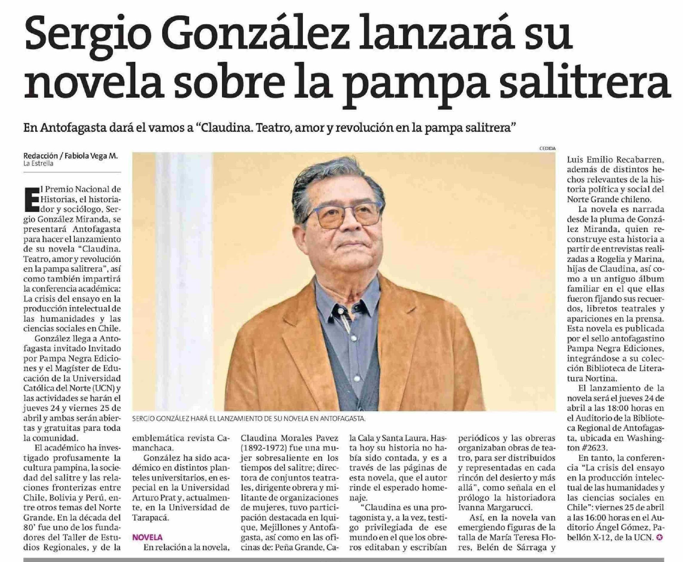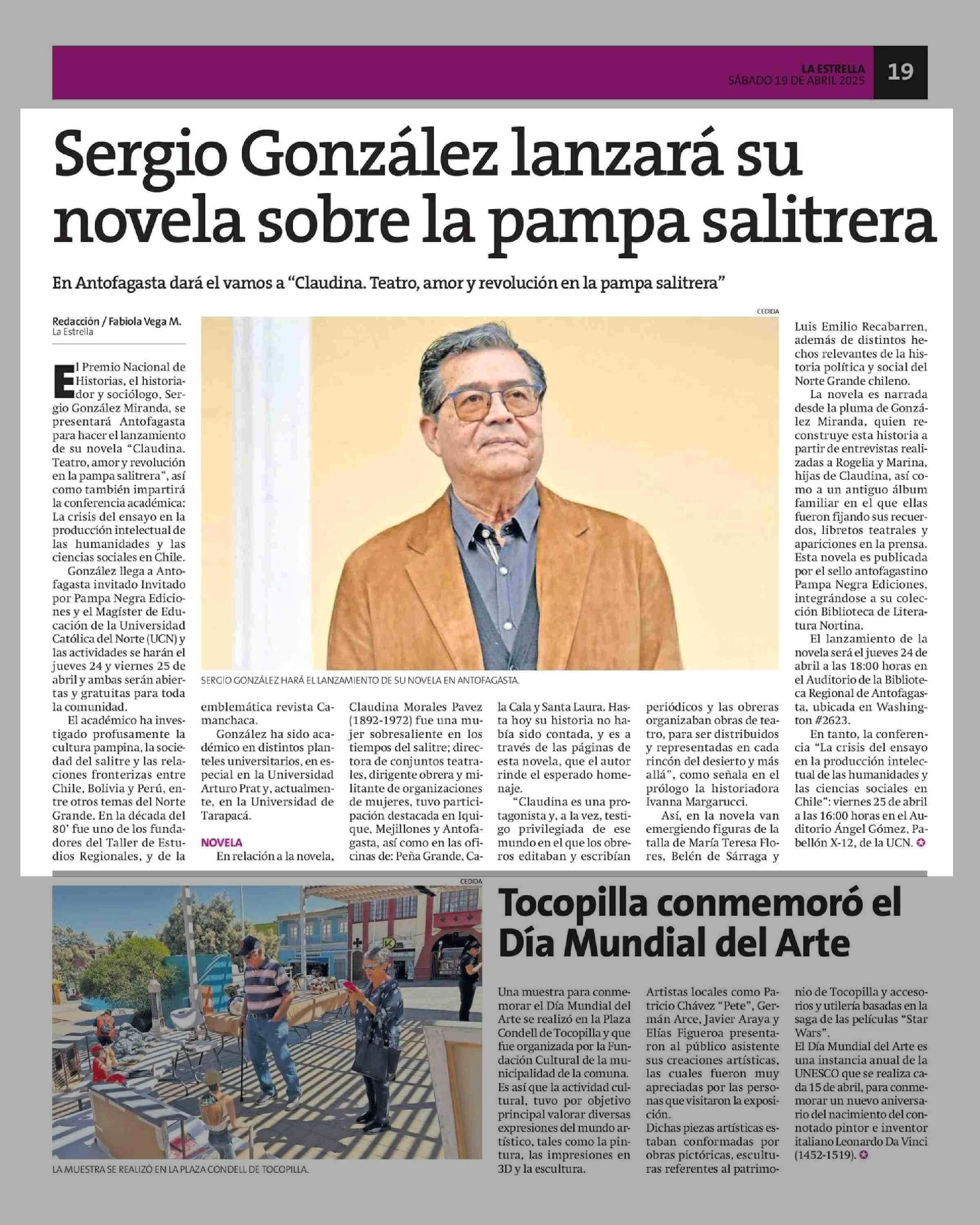 Sergio González lanzará su novela sobre la pampa salitrera 19-04-2025 La Estrella de Antofagasta |