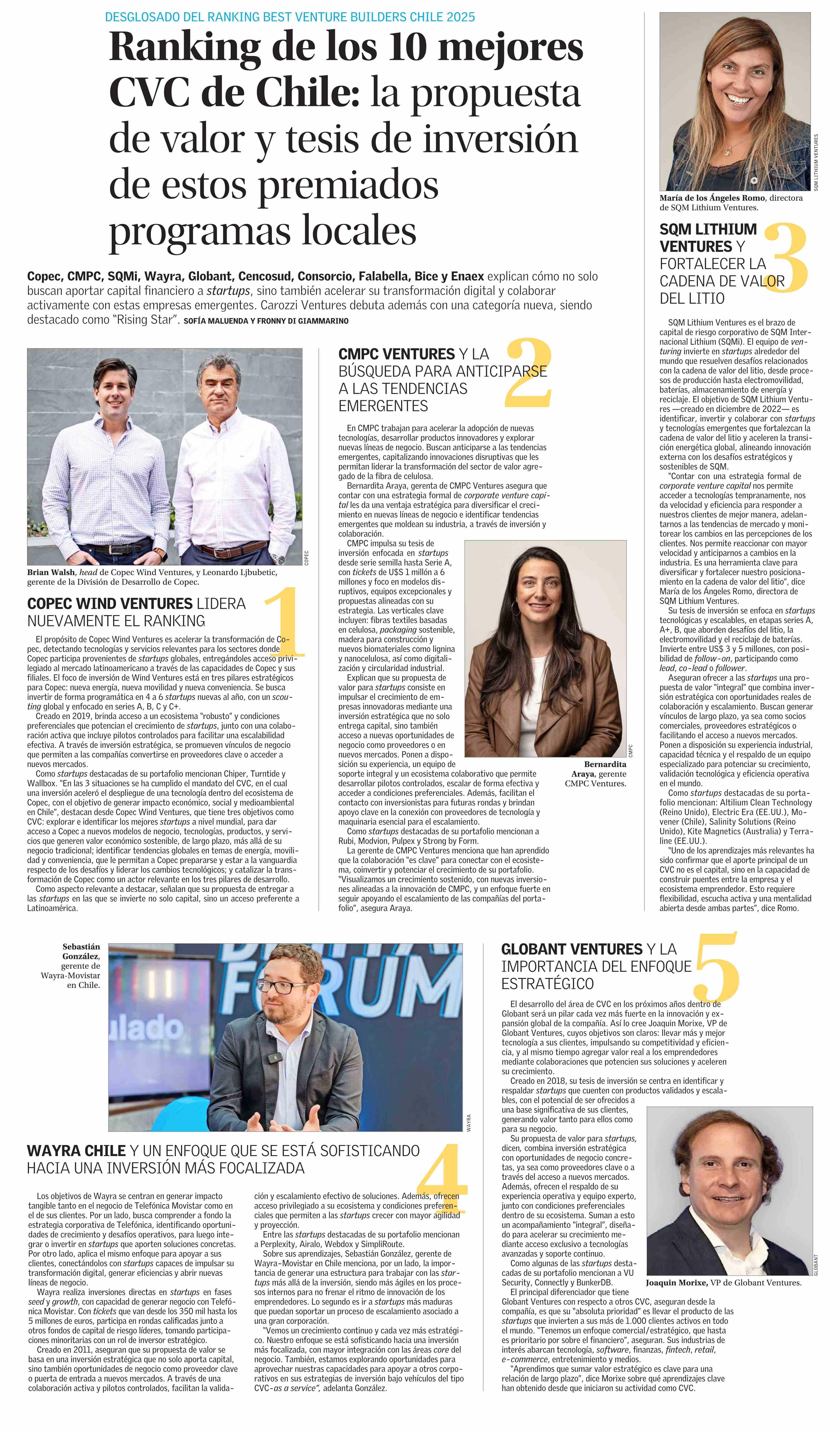 Ranking de los 10 mejores CVC de Chile: la propuesta de valor y tesis de inversión de estos premiados programas locales 29-05-2025 El Mercurio |