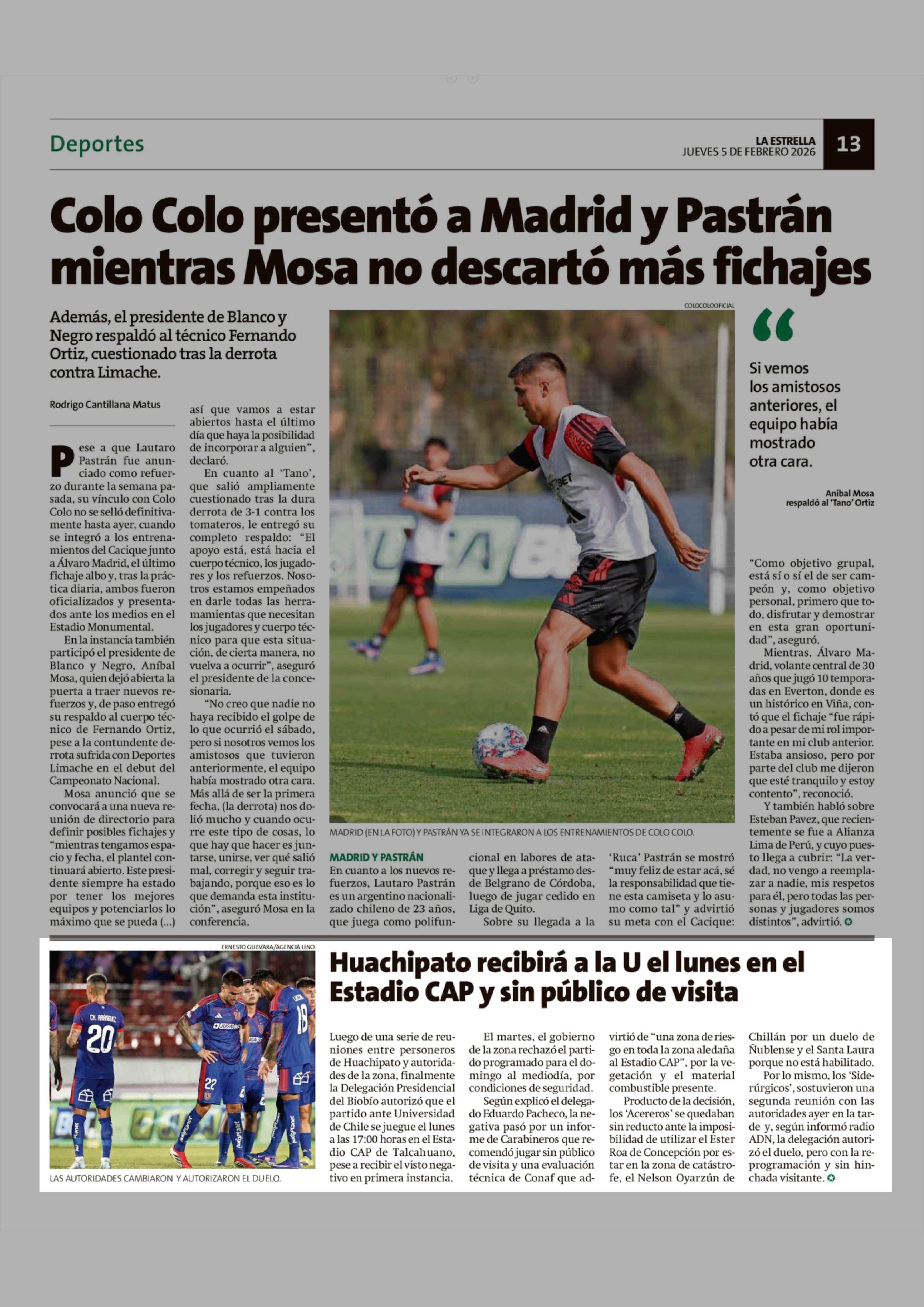 Huachipato recibirá a la U el lunes en el Estadio CAP y sin público de visita 05-02-2026 La Estrella de Valparaíso |