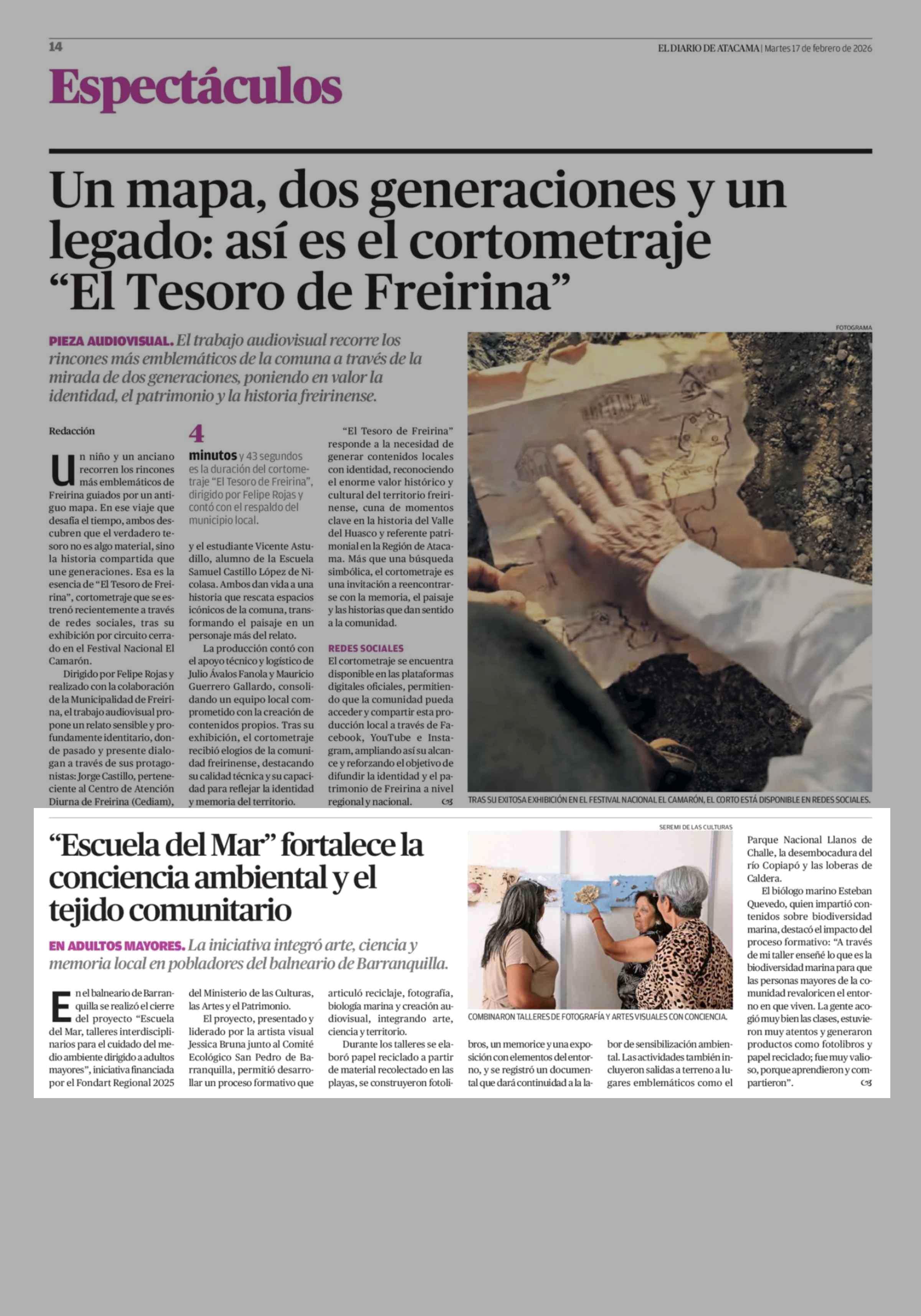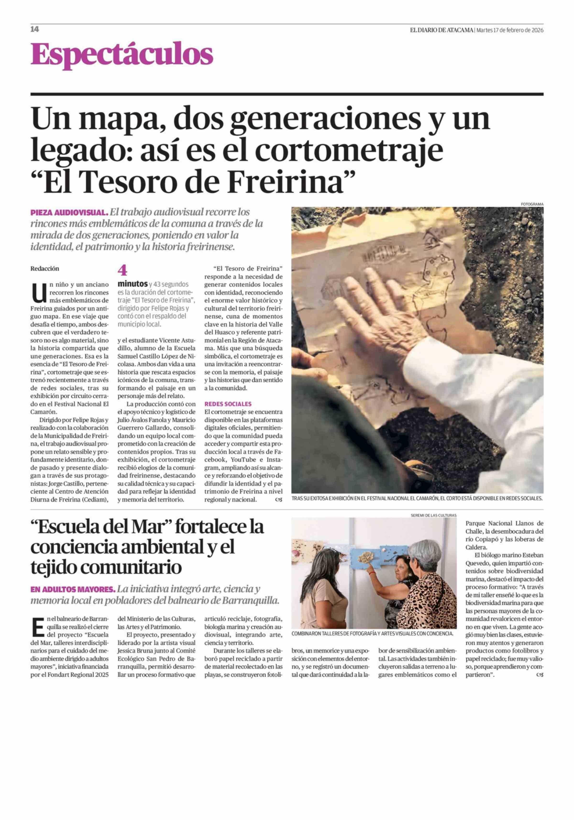 "Escuela del Mar" fortalece la conciencia ambiental y el tejido comunitario 17-02-2026 El Diario de Atacama |