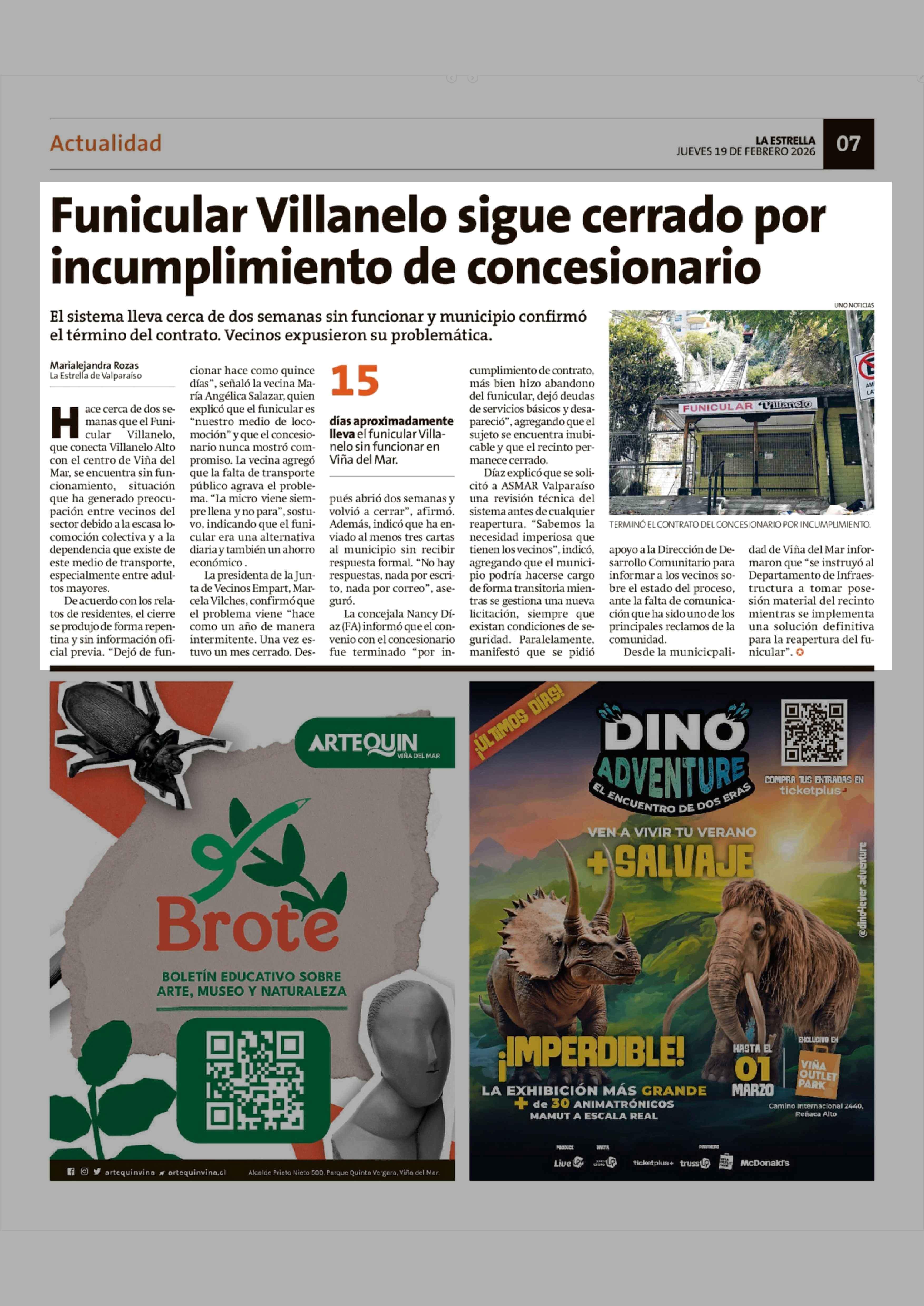 Funicular Villanelo sigue cerrado por incumplimiento de concesionario 19-02-2026 La Estrella de Valparaíso |