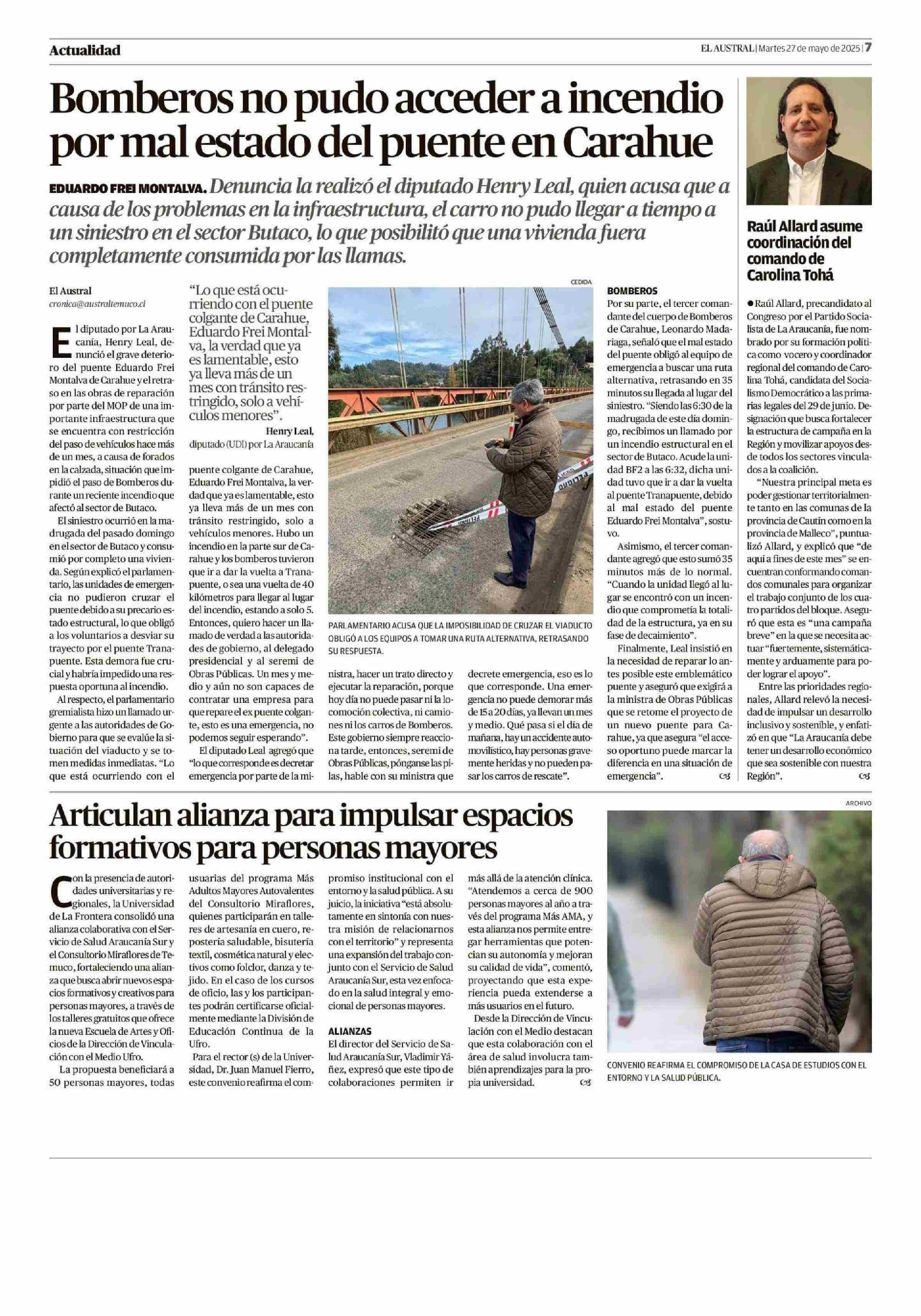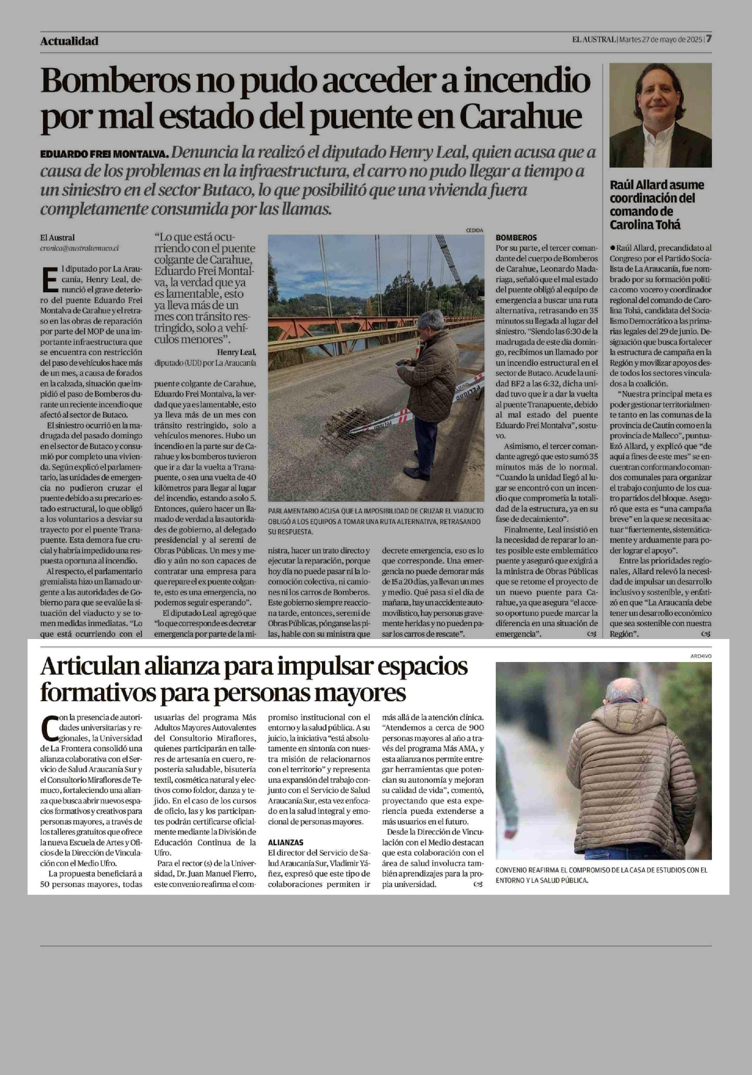 | Fecha: | 27-05-2025 | Sector: | Noticia general | Región: | Región de la Araucanía |