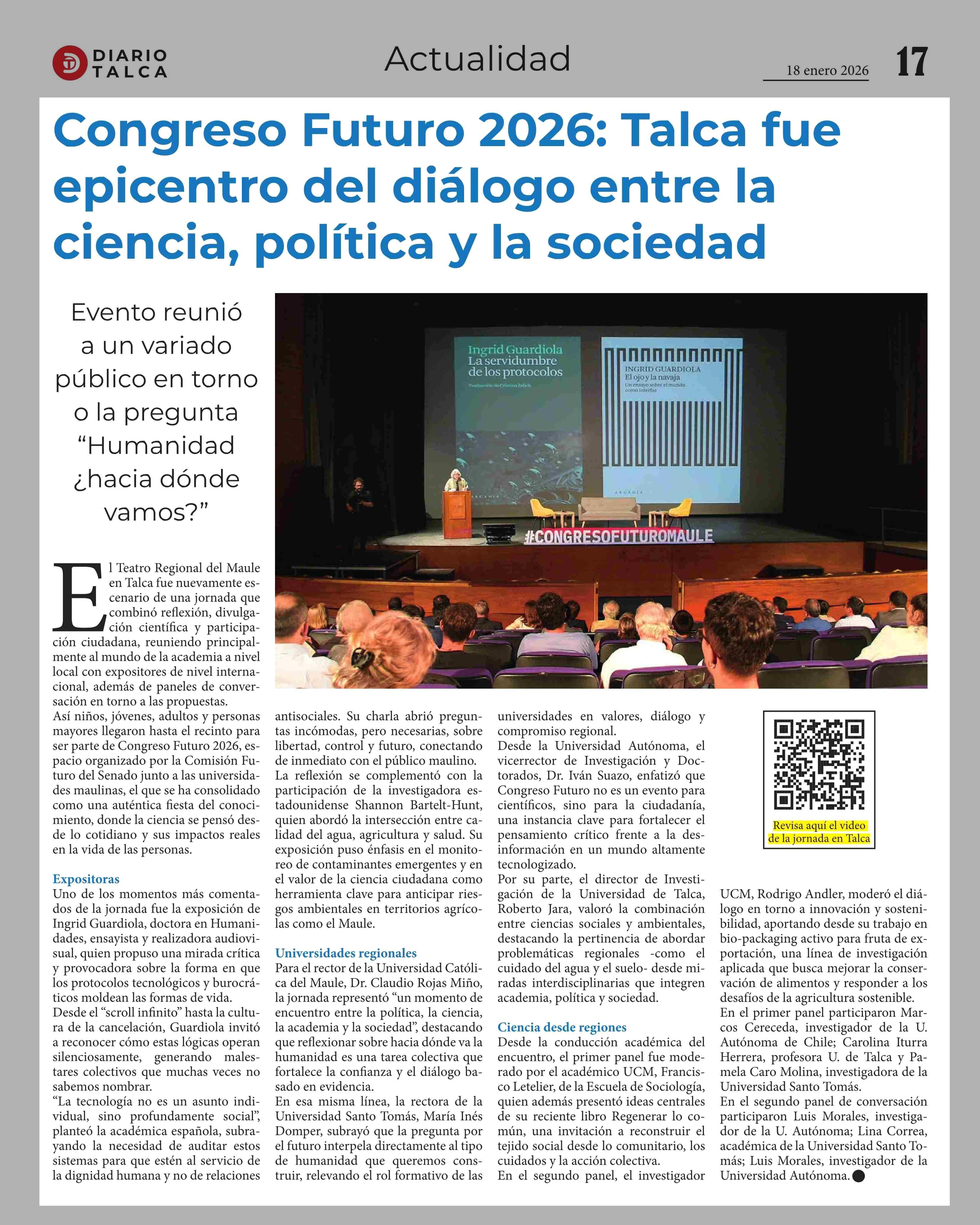 Título: Congreso Futuro 2026: Talca fue epicentro del diálogo entre la ciencia, política y la sociedad