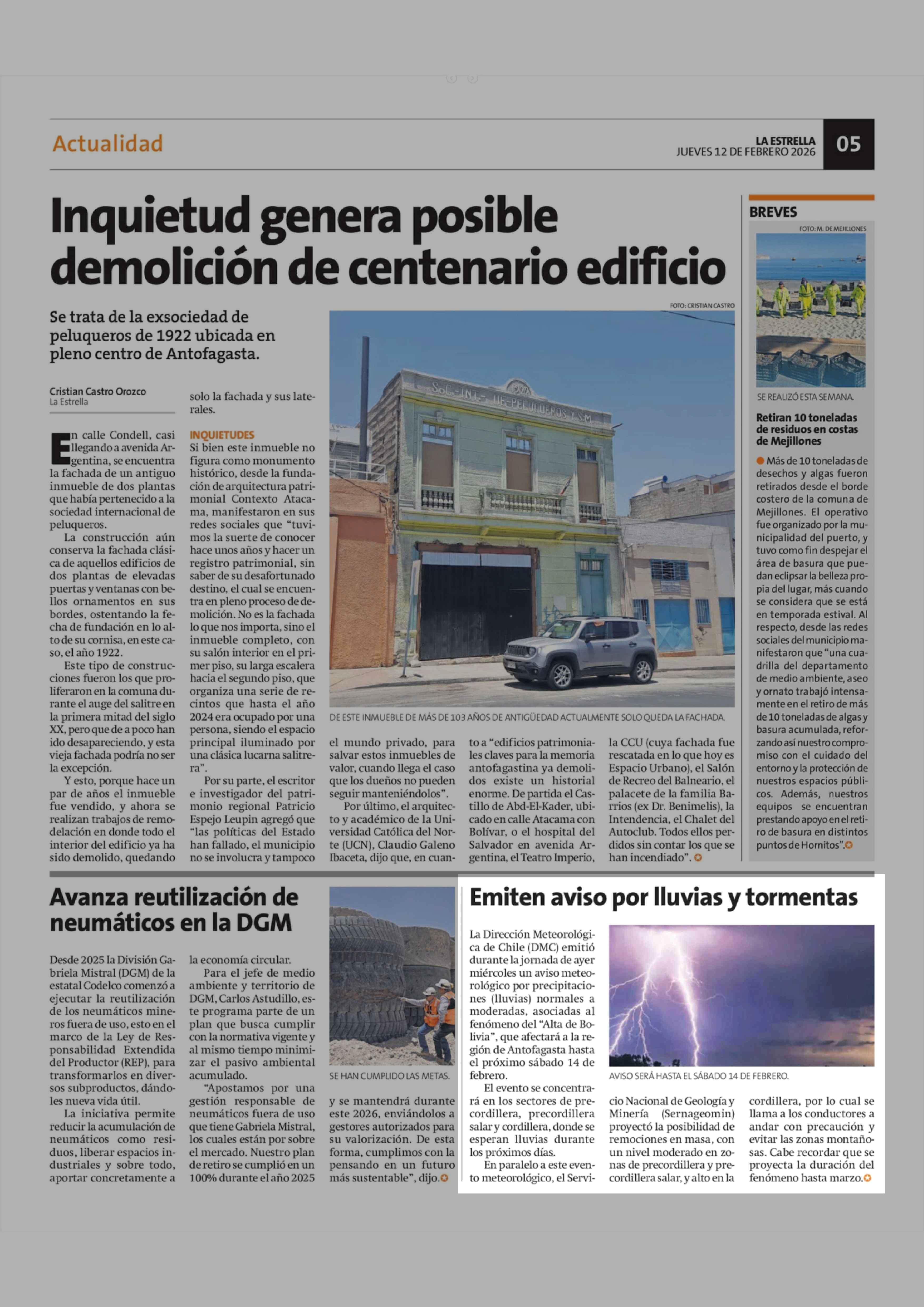 | Fecha: | 12-02-2026 | Sector: | Noticia general | Región: | Región de Antofagasta |