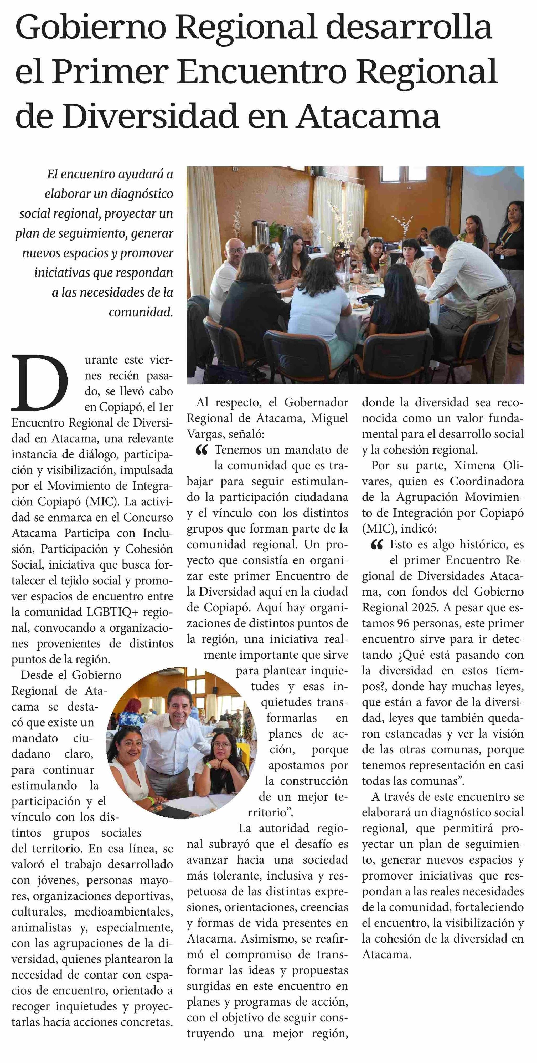 Título: Gobierno Regional desarrolla el Primer Encuentro Regional de Diversidad en Atacama