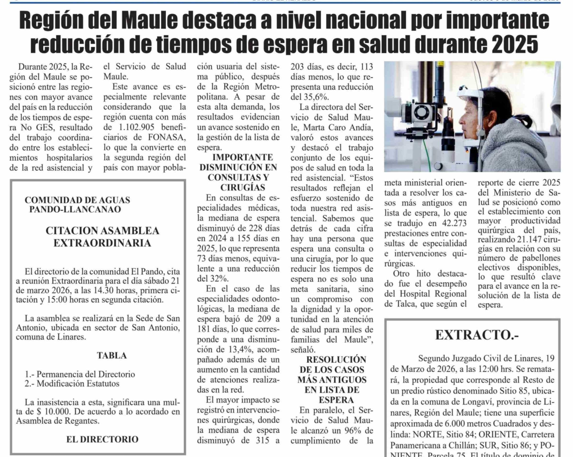 Fecha: 05-03-2026 Sector: Noticia general Región: Región del Maule