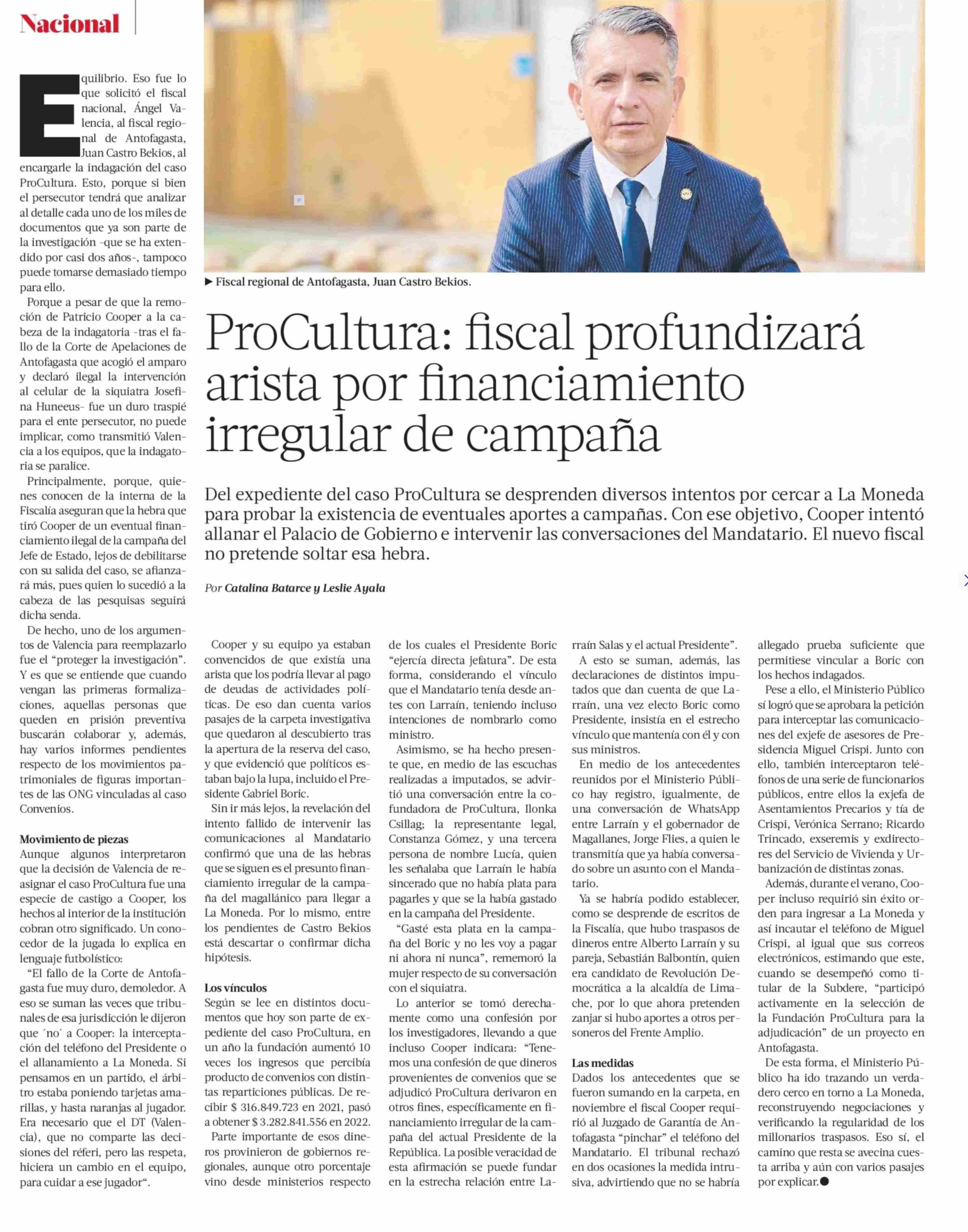 | Título: | ProCultura: fiscal profundizará arista por financiamiento irregular de campaña |