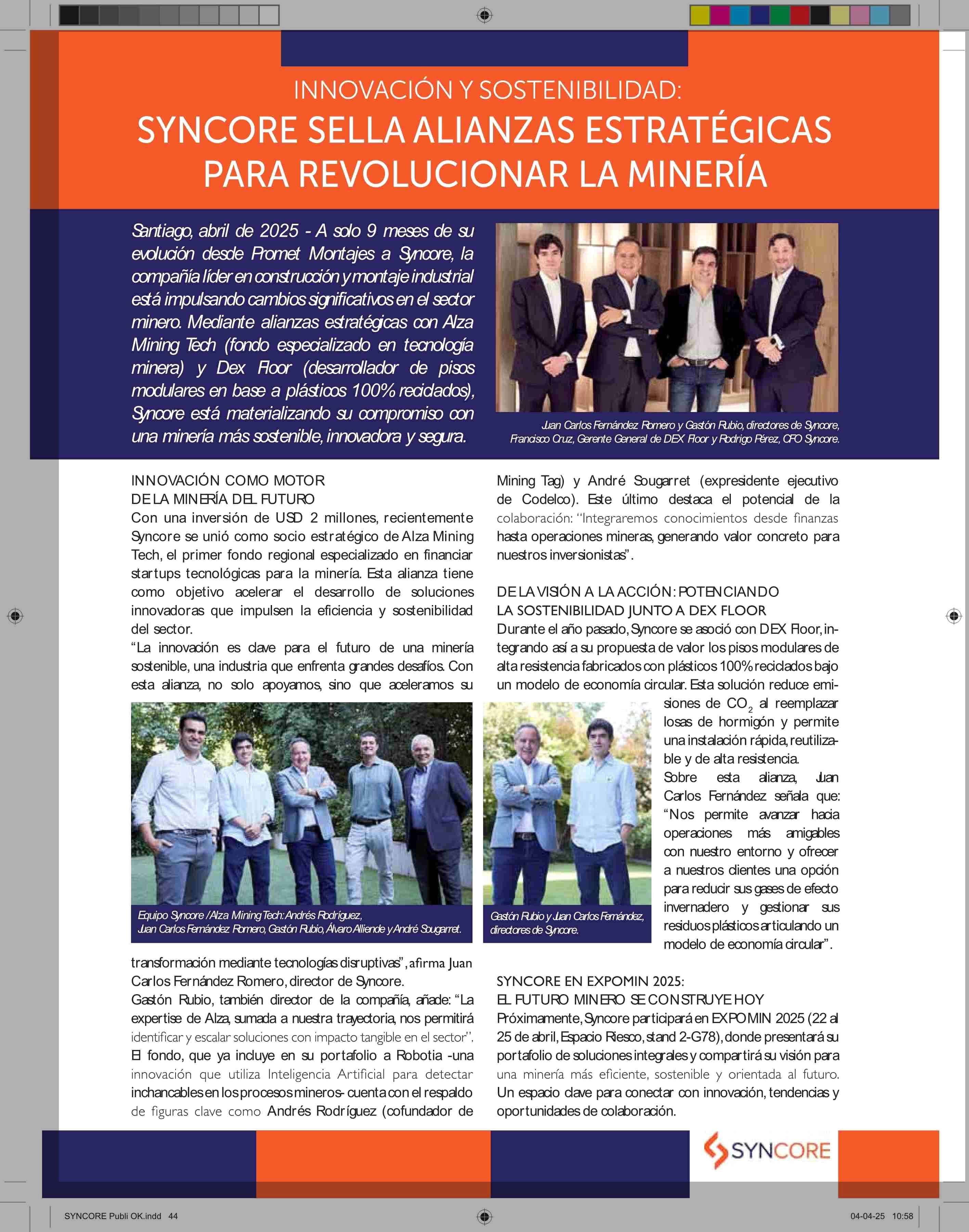 Título: SYNCORE SELLA ALIANZAS ESTRATÉGICAS PARA REVOLUCIONAR LA MIN ERÍA
