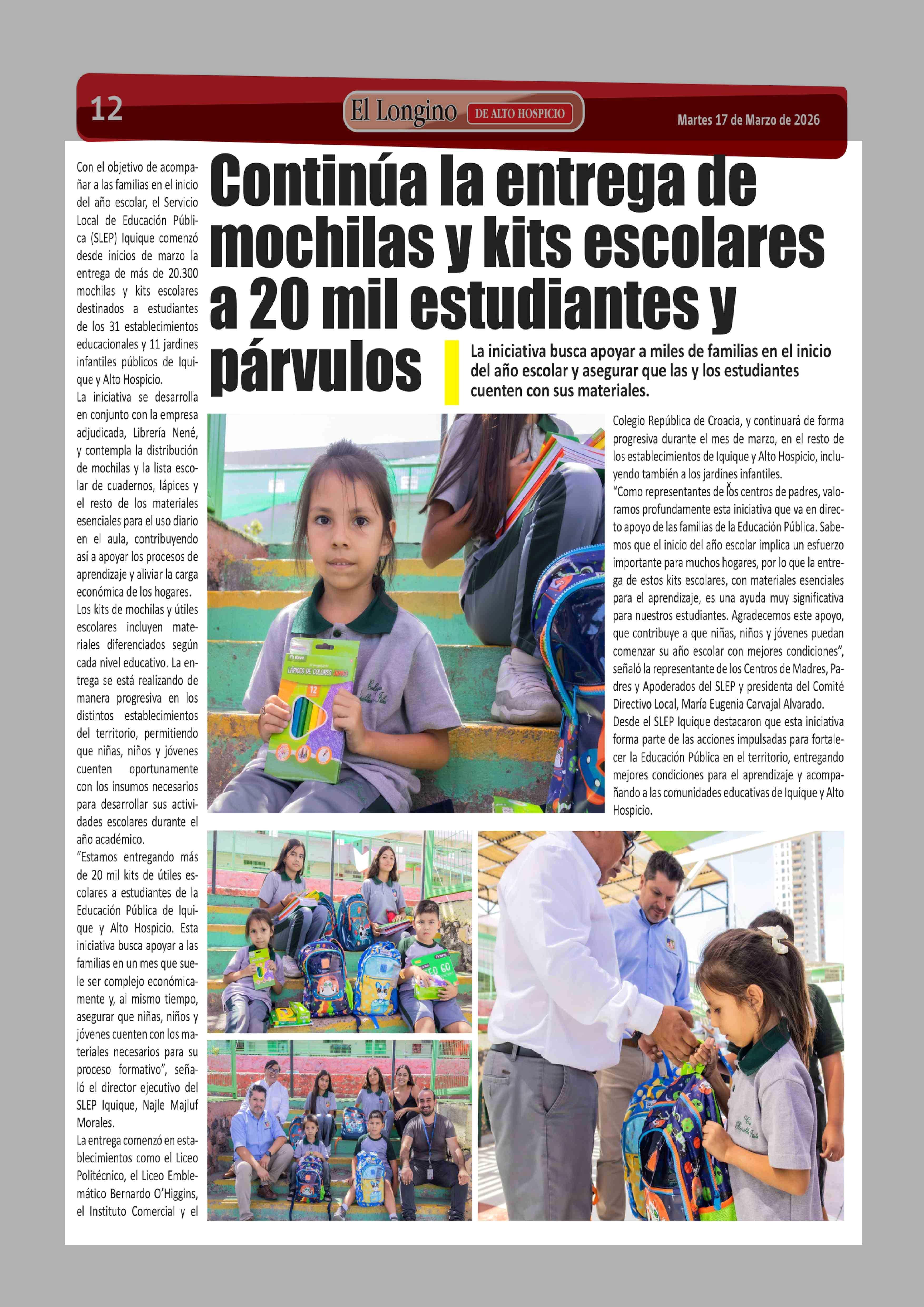 Continúa la entrega de mochilas y kits escolares a 20 mil estudiantes y párvulos | 17-03-2026 El Longino |