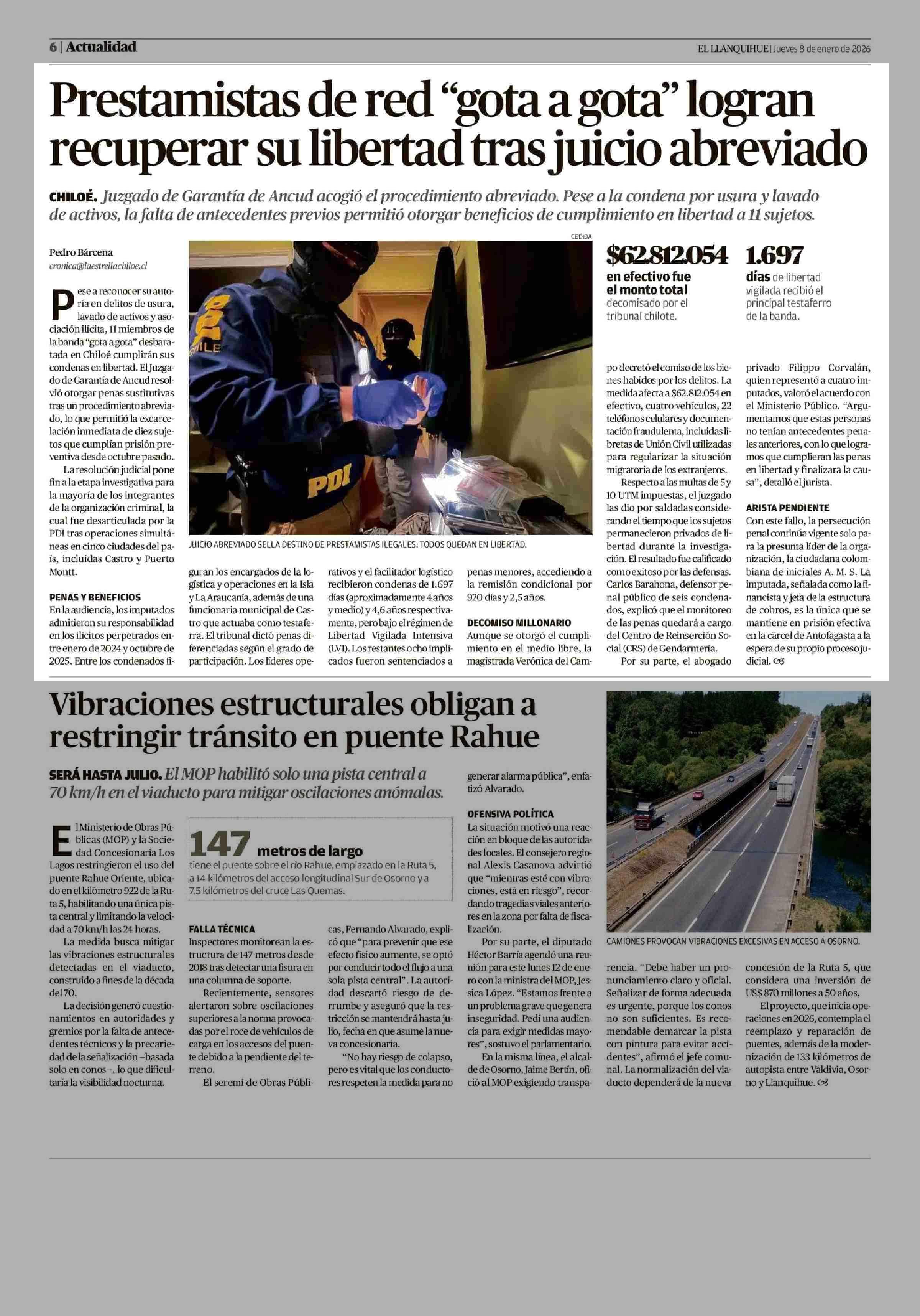 Prestamistas de red "gota a gota" logran recuperar su libertad tras juicio abreviado 08-01-2026 El Llanquihue |