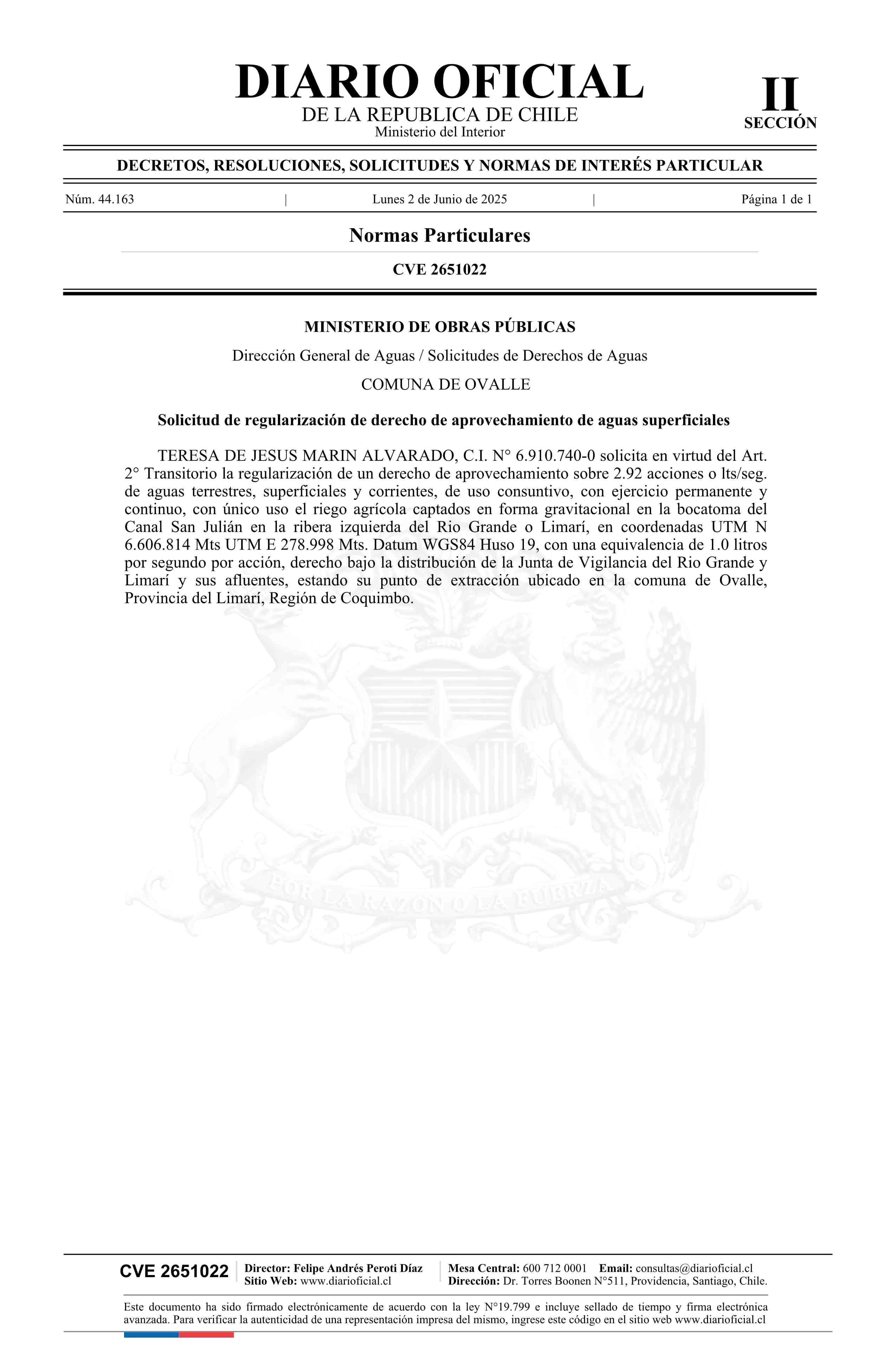 Solicitud Marín Alvarado Teresa de Jesús 02-06-2025 Diario Oficial Edición Electrónica |