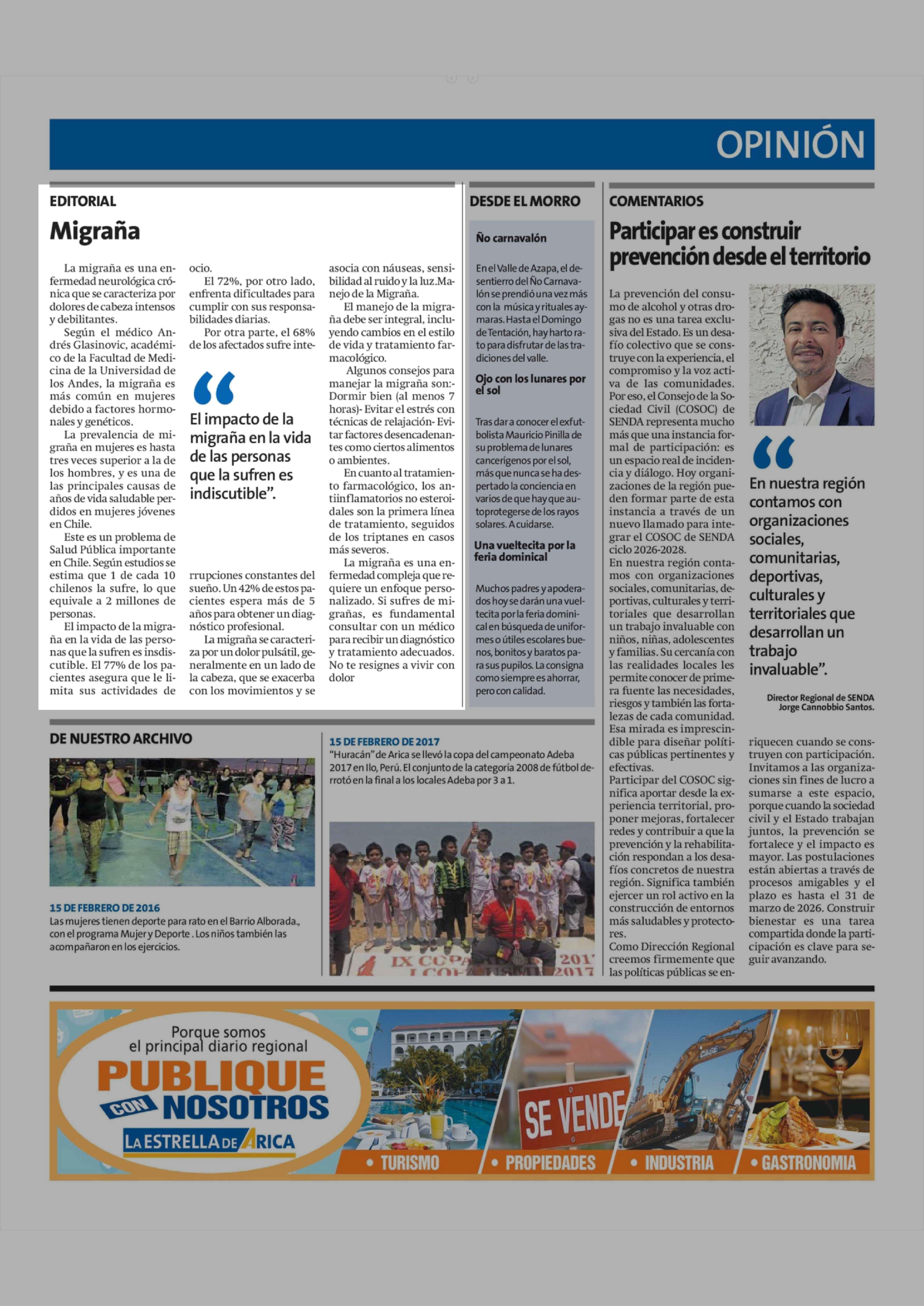 Editorial: Migraña 15-02-2026 La Estrella de Arica |