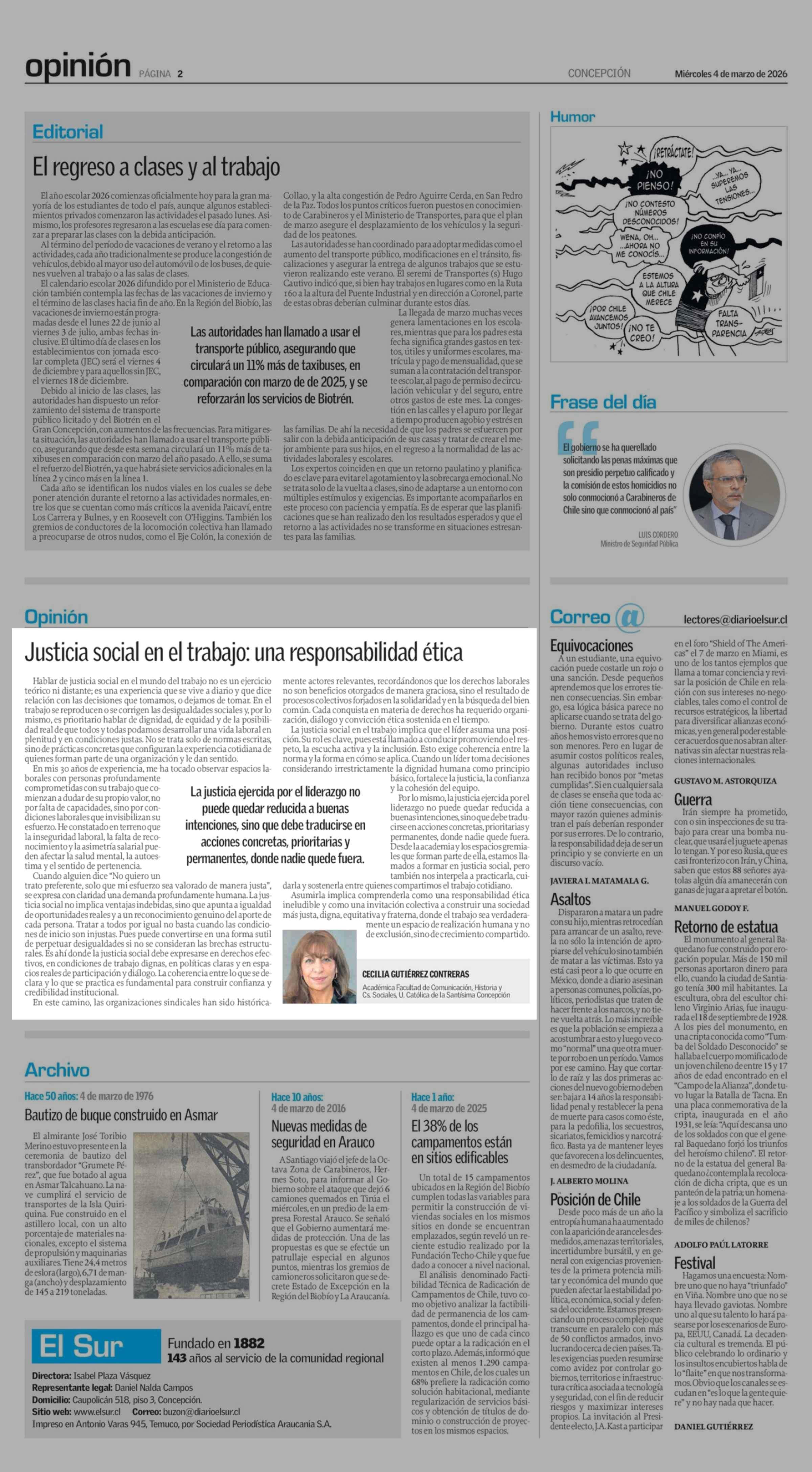 Fecha: 04-03-2026 Sector: Columnas de Opinión Región: Región del Bío-Bío