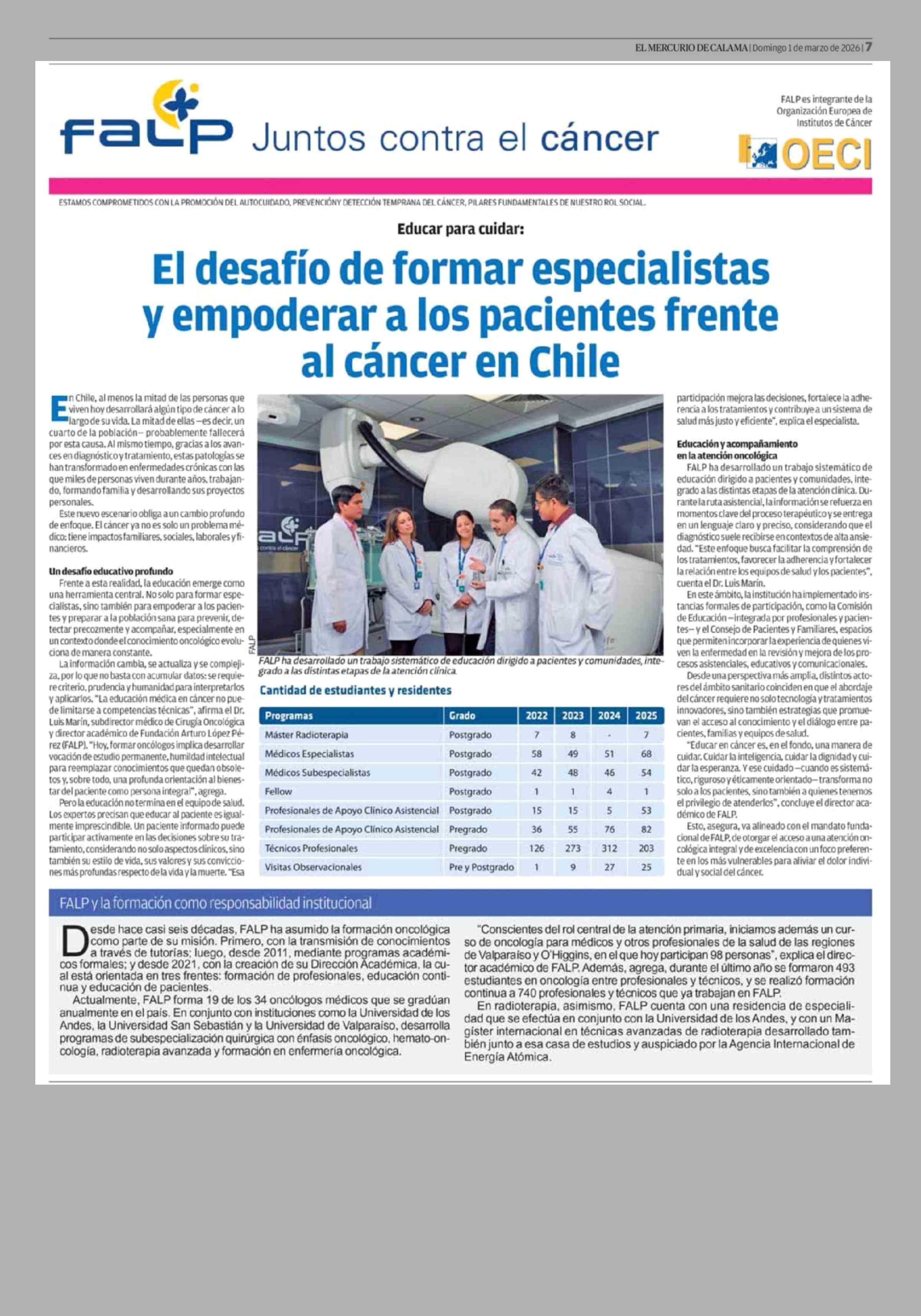 El desafío de formar especialistas y empoderar a los pacientes frente al cáncer en Chile 01-03-2026 El Mercurio de Calama |