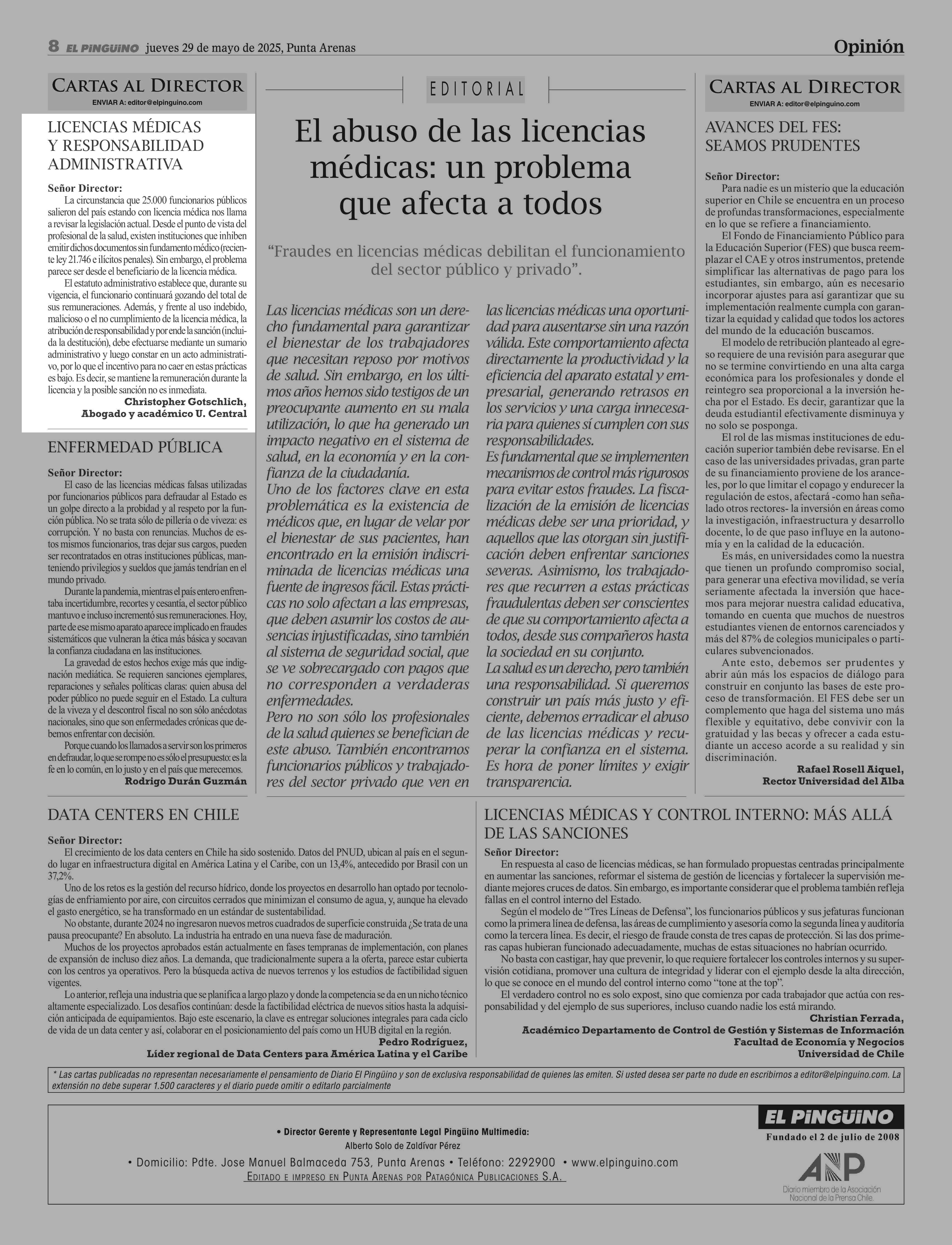 CARTAS: LICENCIAS MÉDICAS Y RESPONSABILIDAD ADMINISTRATIVA 29-05-2025 El Pingüino |