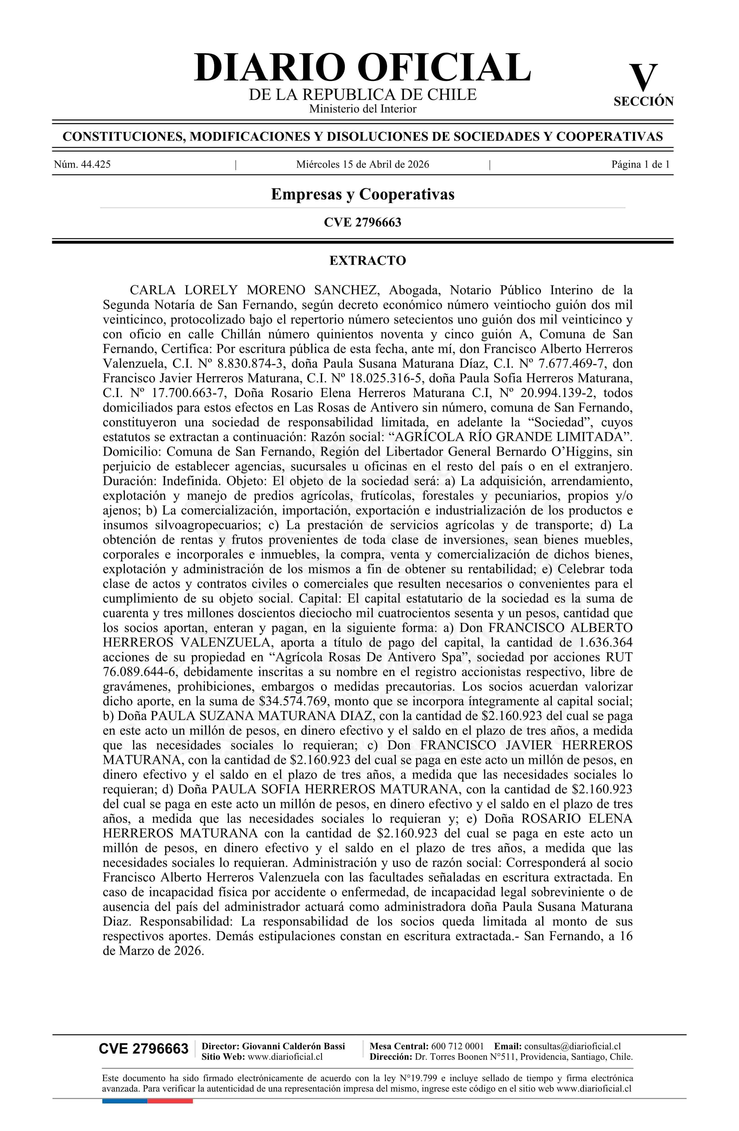 Título: AGRÍCOLA RÍO GRANDE LIMITADA