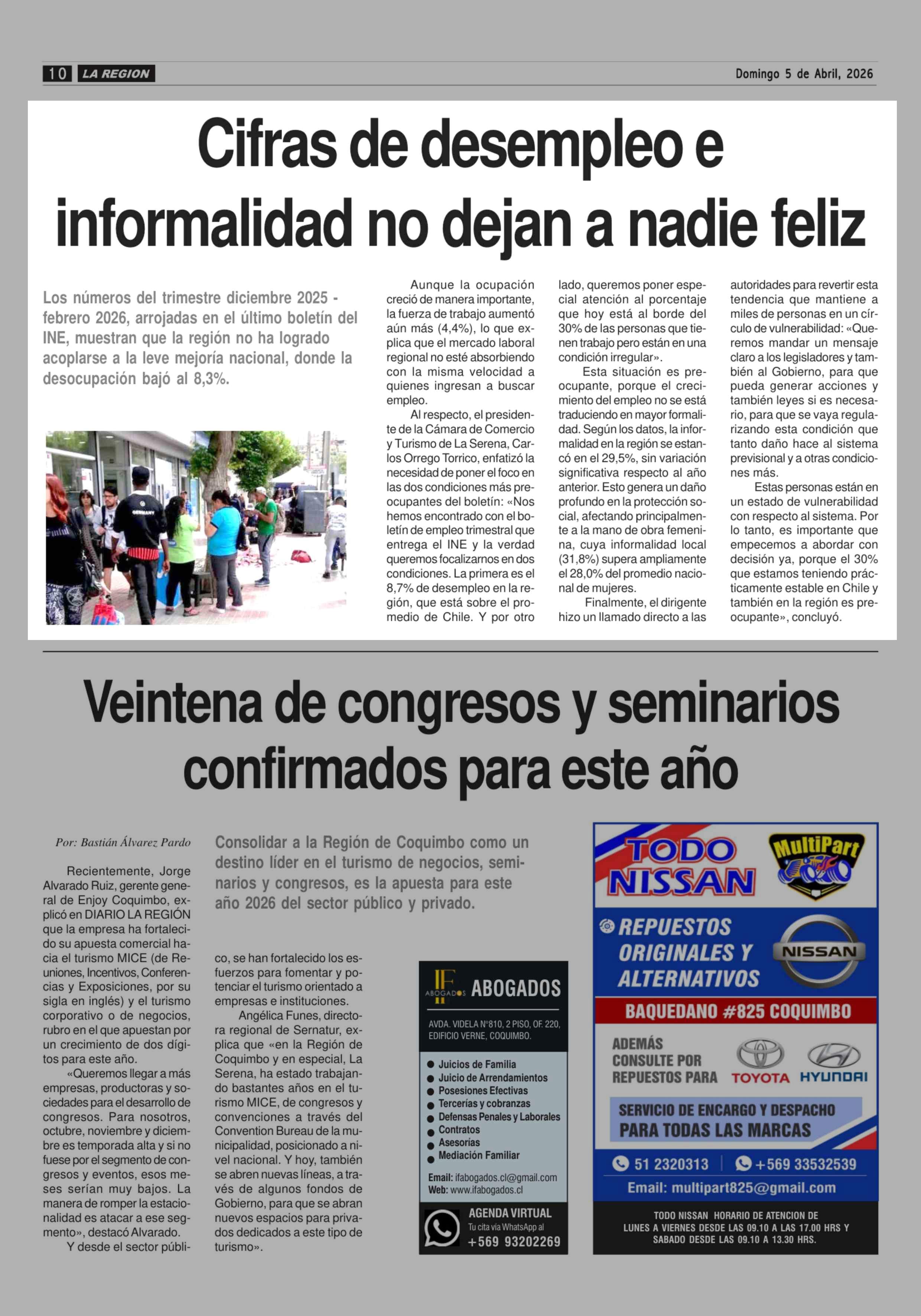 Cifras de desempleo e informalidad no dejan a nadie feliz 05-04-2026 Diario la Región |