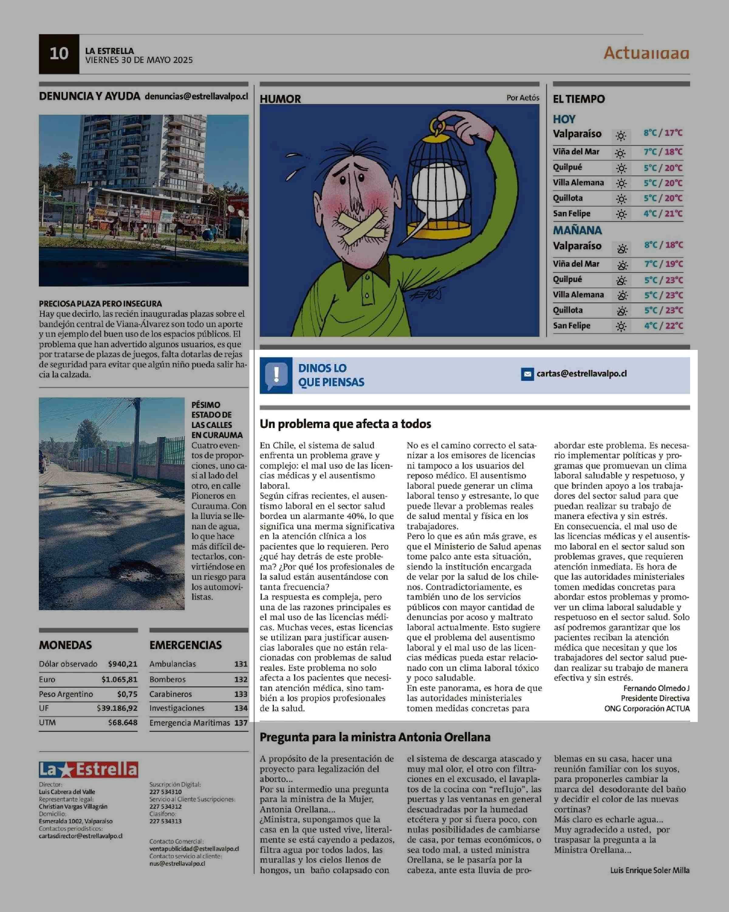 Cartas: Un problema que afecta a todos 30-05-2025 La Estrella de Valparaíso |